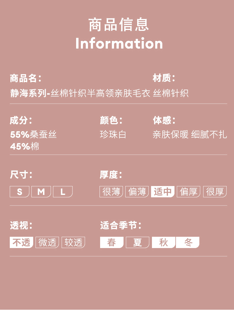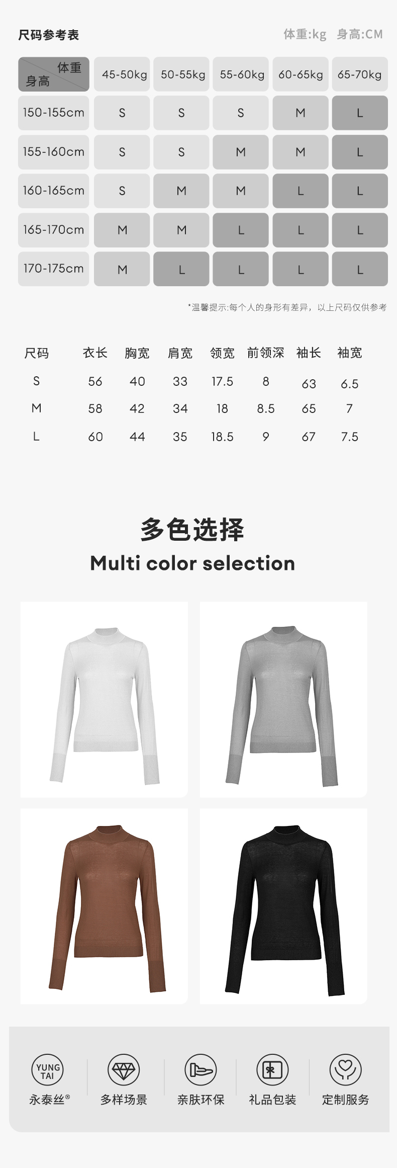 丝所|S22N003 静海丝绵针织半高领上衣[ 白AC / 灰BC / 黑CC ]
