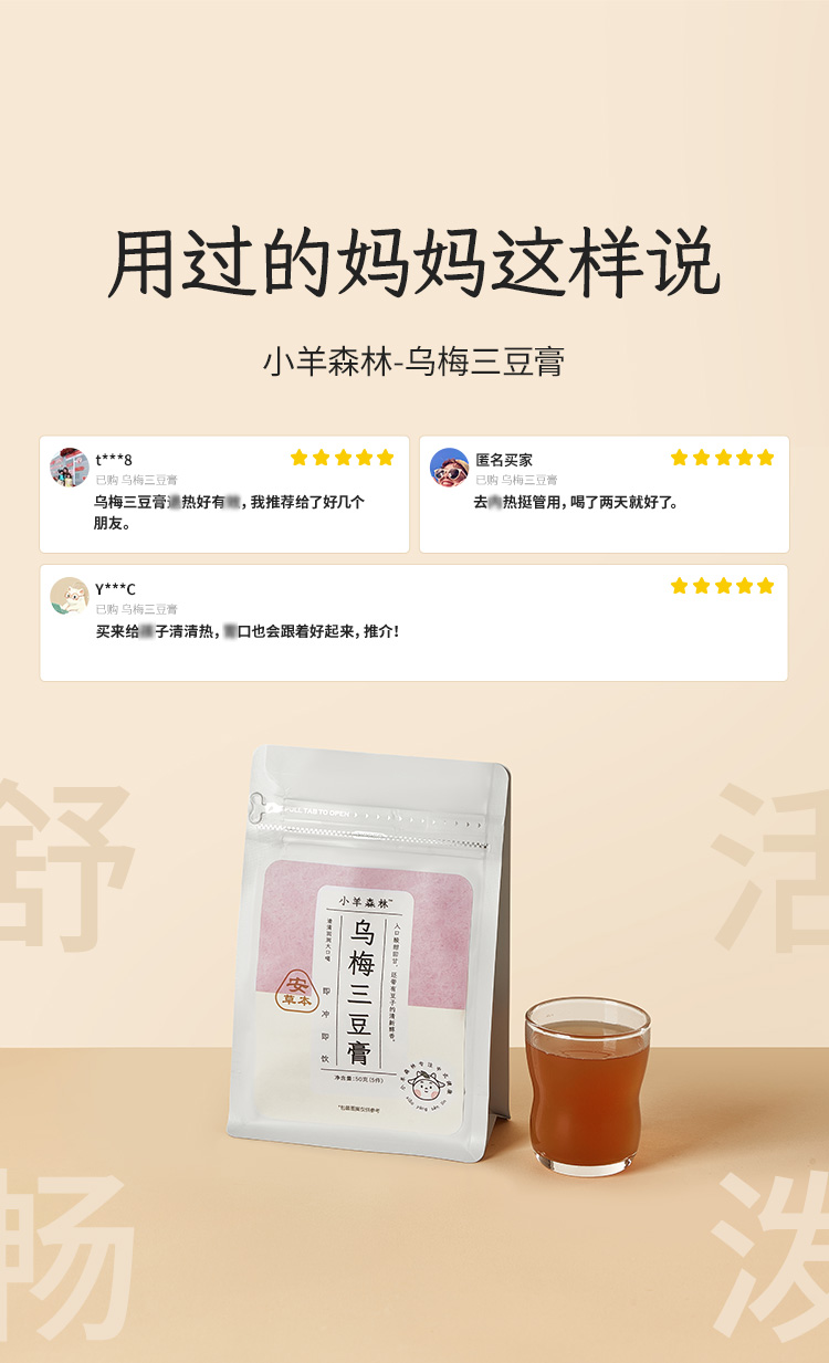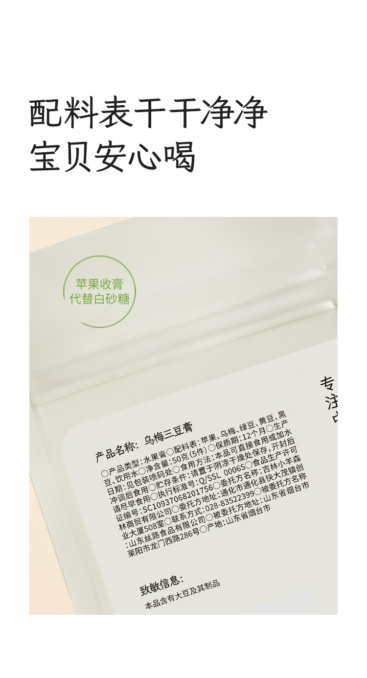 「乌梅三豆膏」(5袋装)清热补津液 古方复配 浇灭火苗 天然食材 酸甜可口 小包装随身带
