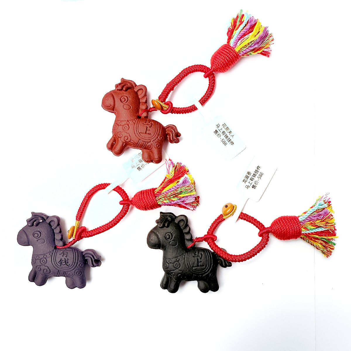 敦煌七彩马上有钱钥匙扣(带流苏)