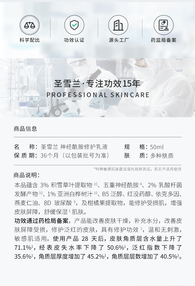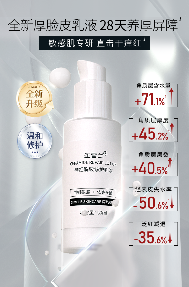 【自营】重磅升级 圣雪兰 厚脸皮乳50ml 多重神经酰胺 30分钟褪红 敏感肌专研