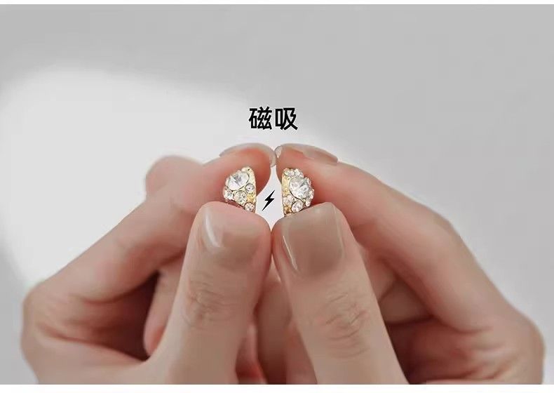 无耳洞锆石磁吸耳夹无痛吸力强磁耳环女潮好运耳饰