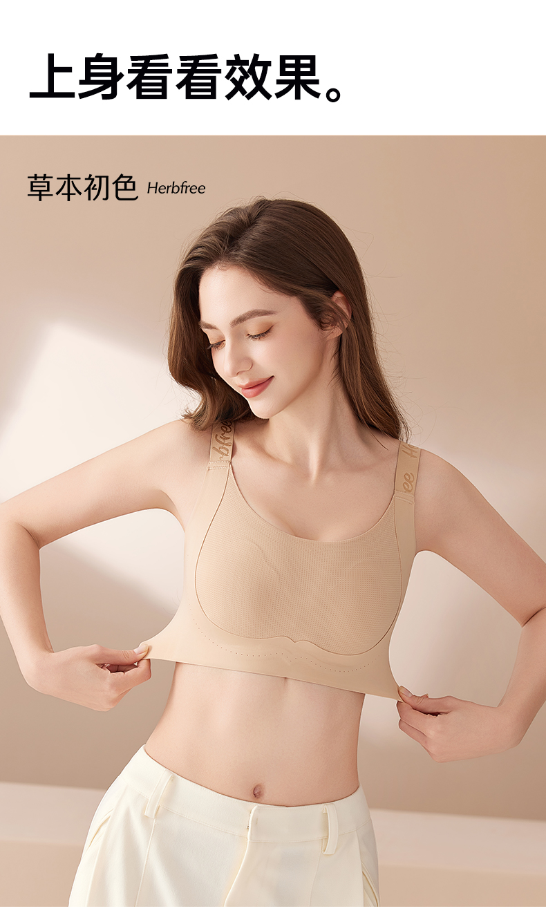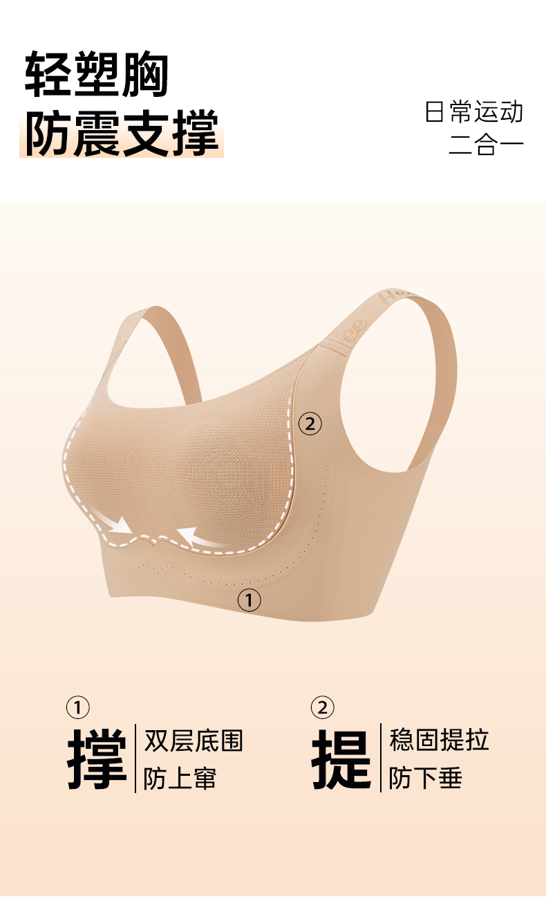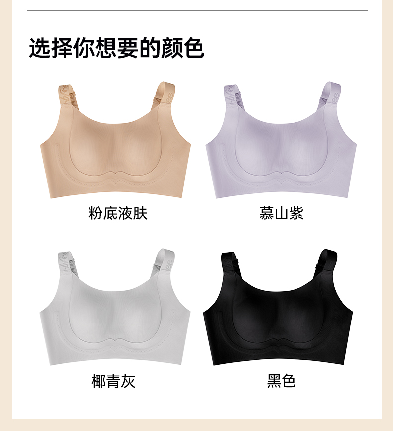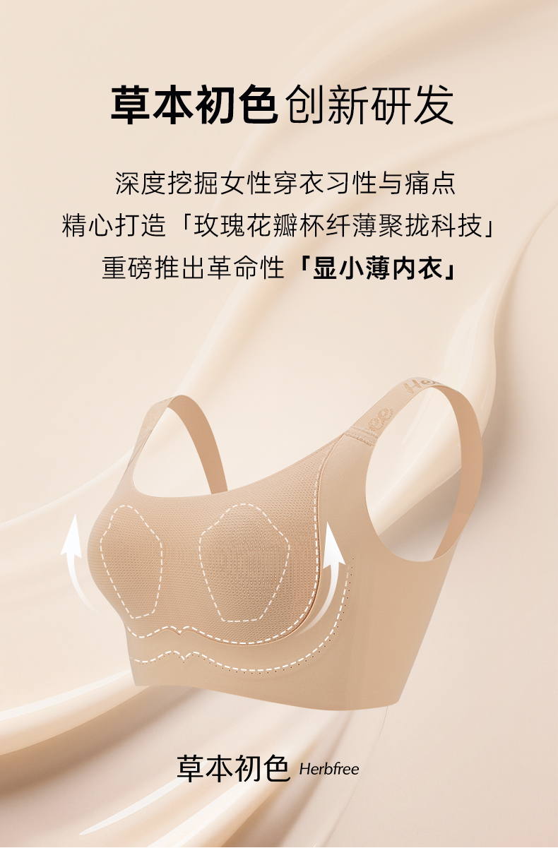 【两件装】草本初色粉底液内衣女隐形无痕大胸显小新款收副乳防下垂文胸 65134款