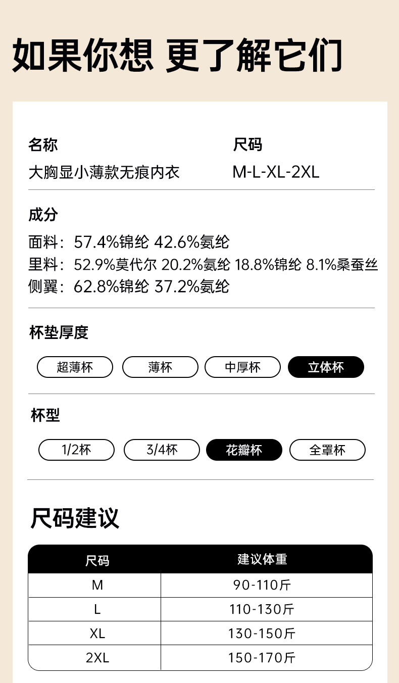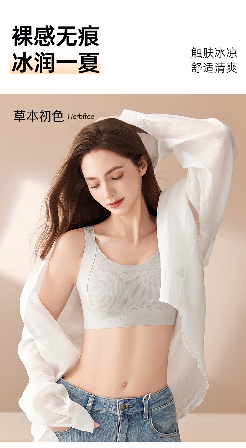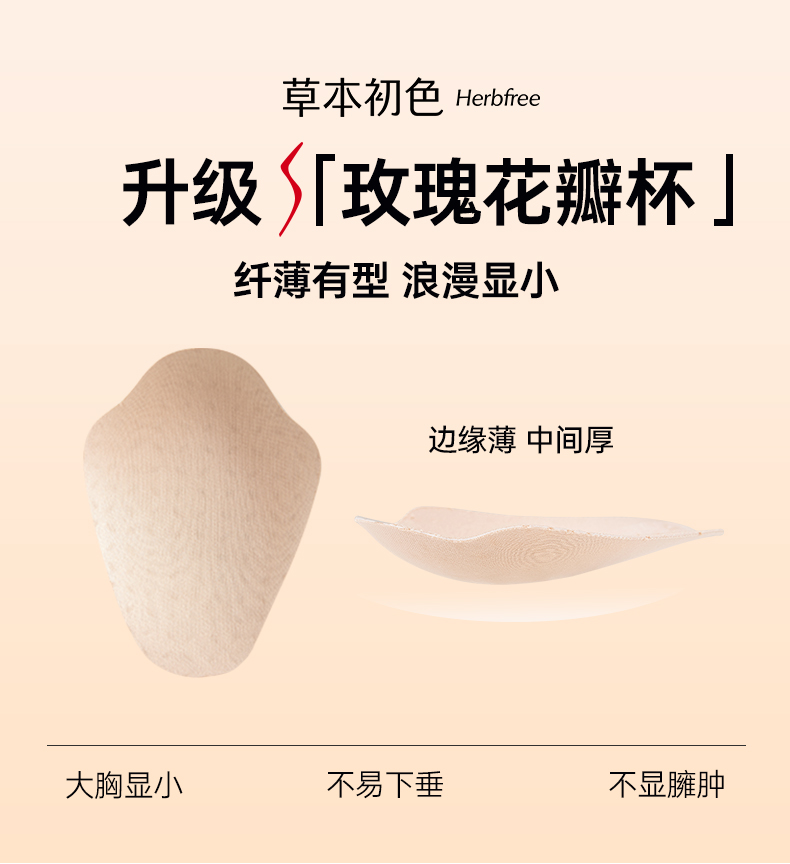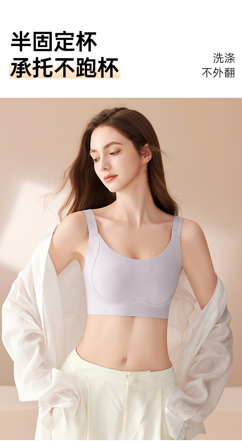 【两件装】草本初色粉底液内衣女隐形无痕大胸显小新款收副乳防下垂文胸 65134款