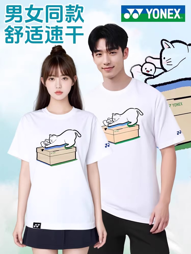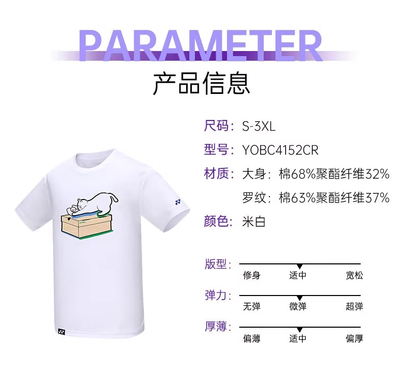 尤尼克斯 男款/女款 遇见生活文化衫 米白色 YOBC4152CR / YOBC4153CR