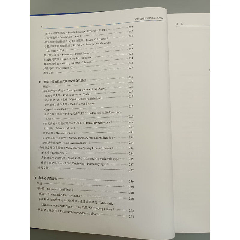 妇科肿瘤的病变种类繁多、组织形态变化大,冰冻切片诊断往往比较困难。原著对妇科常见疾病的临床特征、冰冻样本的大体/肉眼形态、镜下组织学特点以及相关的鉴别诊断做出精炼的论述,*关注术中冰冻切片会诊的适应证、局限性和潜在的陷阱。强调了关键性的诊断要点,同时讨论了冰冻切片诊断对手术过程中临床决策的影响。原著共分13个章节, 章导论介绍妇科病理学中冰冻切片评估的目的,冰冻样本的评估和取样,强调了术中冰冻诊断的成功策略; 章 *十三章分别 外阴与阴道、宫颈、子宫内膜上皮性病变、子宫间叶性肿瘤、宫内妊娠与妊娠滋养细胞肿瘤、输卵管、卵巢上皮性肿瘤、卵巢生殖细胞肿瘤、卵巢性索-间质肿瘤、卵巢非肿瘤性病变及无法归类的卵巢原发性肿瘤、卵巢转移性肿瘤、腹膜中可能需要术中冰冻病理诊断的疾病进行了简明描述,配有高质量的新鲜大体照片和冰冻切片显微镜图像,以帮助识别形态学特征,进而作为术中诊断的快速参考。这本书旨在为所有参与冰冻切片评估的病理医生/病理学家提供详细的术中冰冻诊断实践指导。
