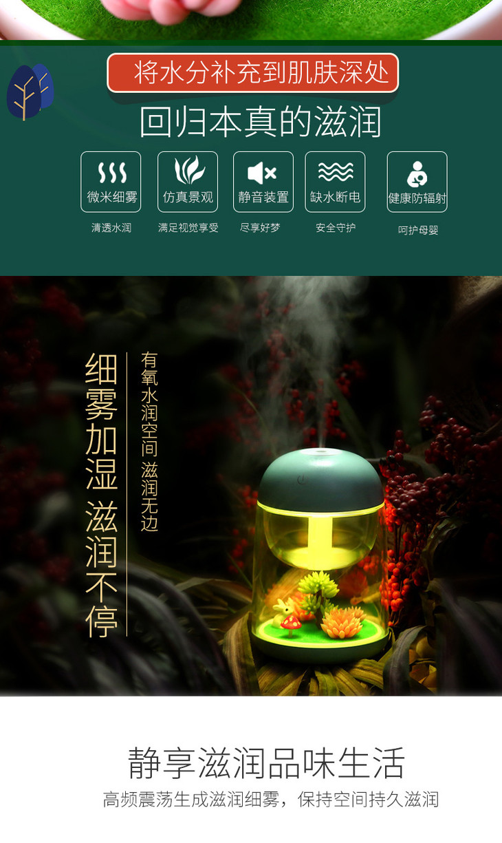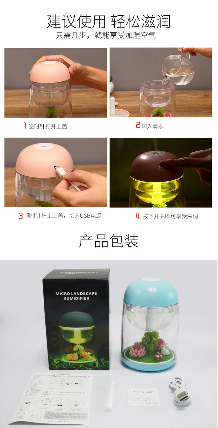 【加湿器】微景观加湿器USB夜灯加湿器家用小型加湿器空气净化加湿器