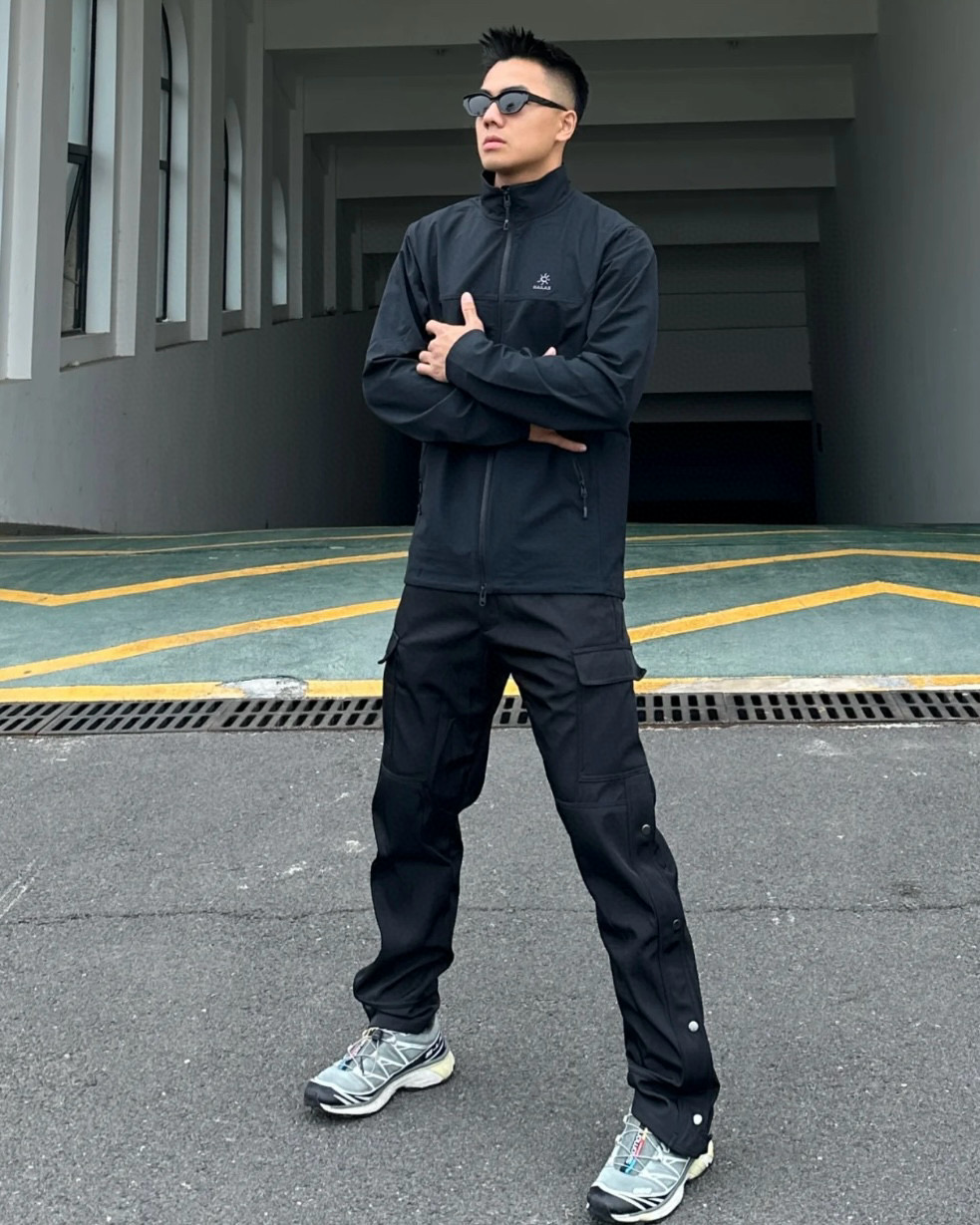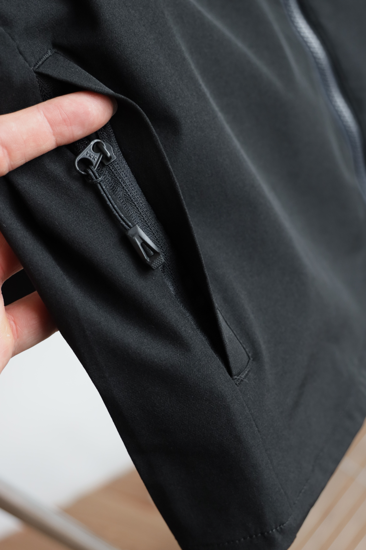 两侧配有拉链插袋。户外机能材质面料,四面弹力,上身轻便无拘束。