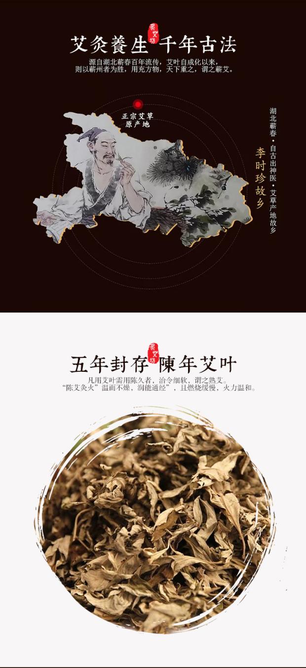 炙艾坊蕲艾桑皮纸古法手工香艾陈艾18×200mm纯艾条10支/盒