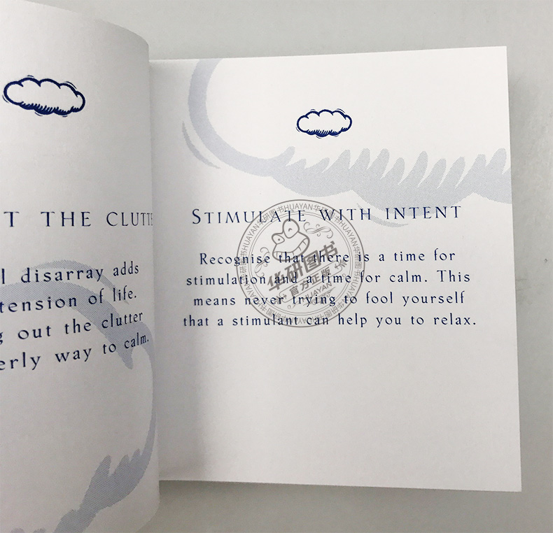 The Little Book Of Calm《平静小书》是一本在英剧《布莱克书店》中出现过的书,内容由许多简短但充满智慧的小句组成。它帮助读者理清思路、缓解焦虑的情绪,从而很好地平衡自己的生活。在当今快节奏、高压力的生活环境下,有了这本书,你就能够学会做情绪的主人,寻得一条通往内心平静的道路!