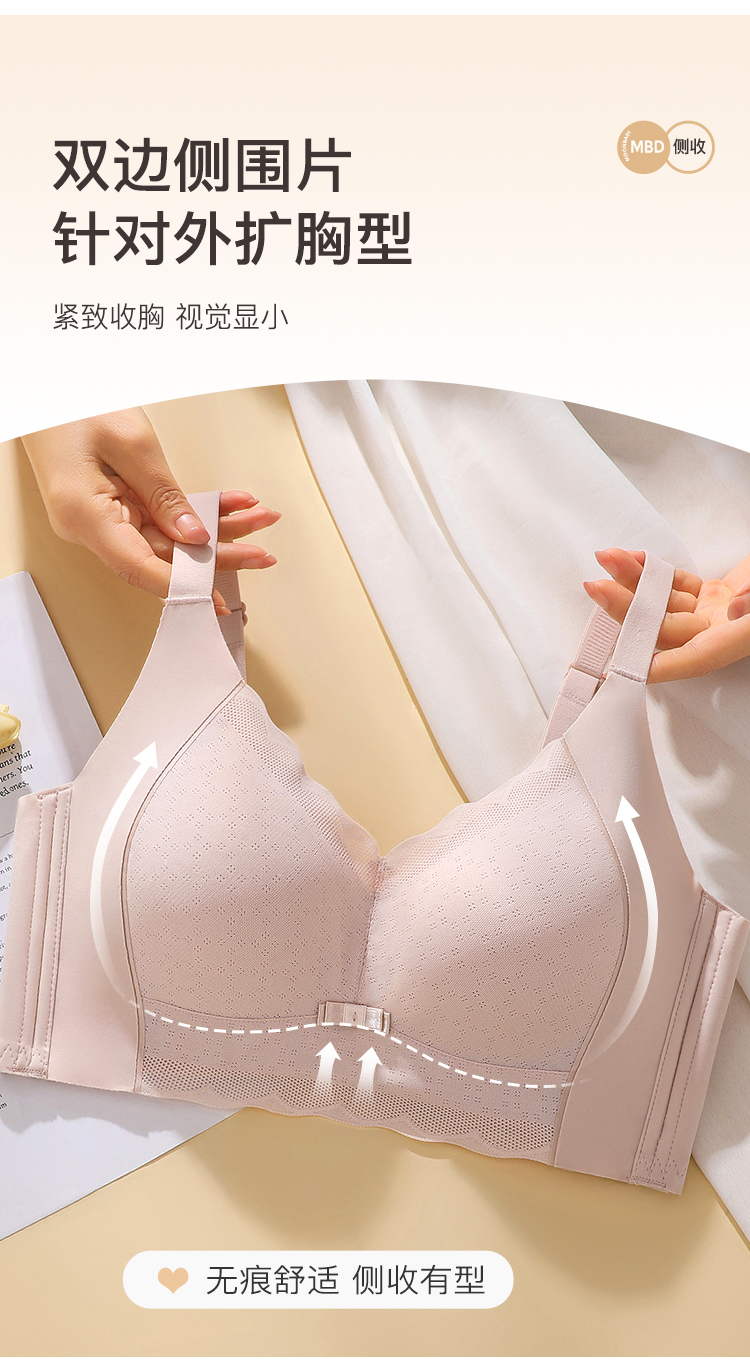 【大胸显瘦显胸小】时尚蕾丝轻薄透气内衣女侧收防垂防外扩文胸罩漫意无痕