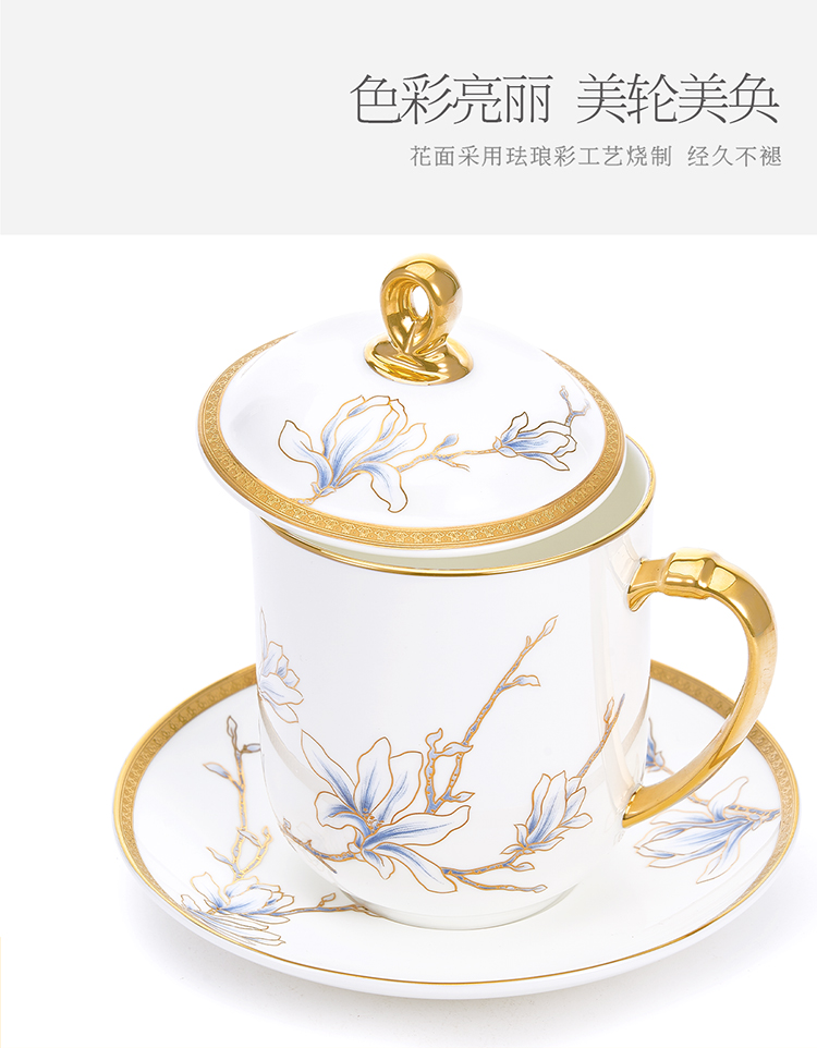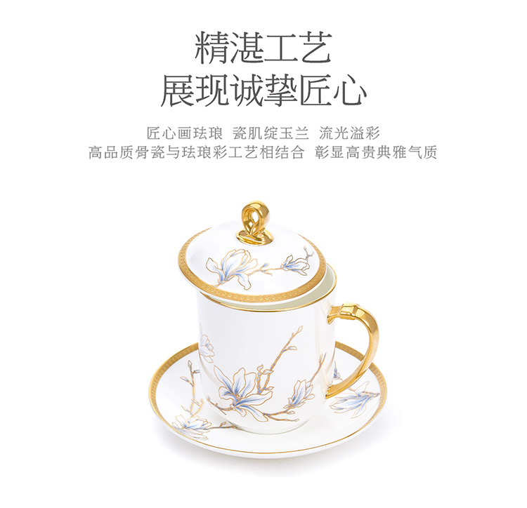 【6F】玛戈隆特 进博盛宴3头会务盖杯 珐琅彩会议办公家用杯子 礼盒包装