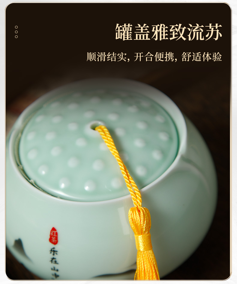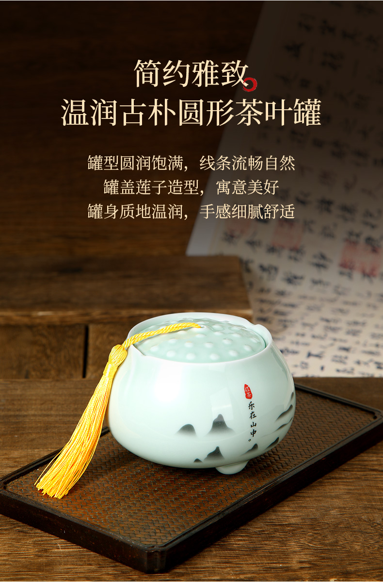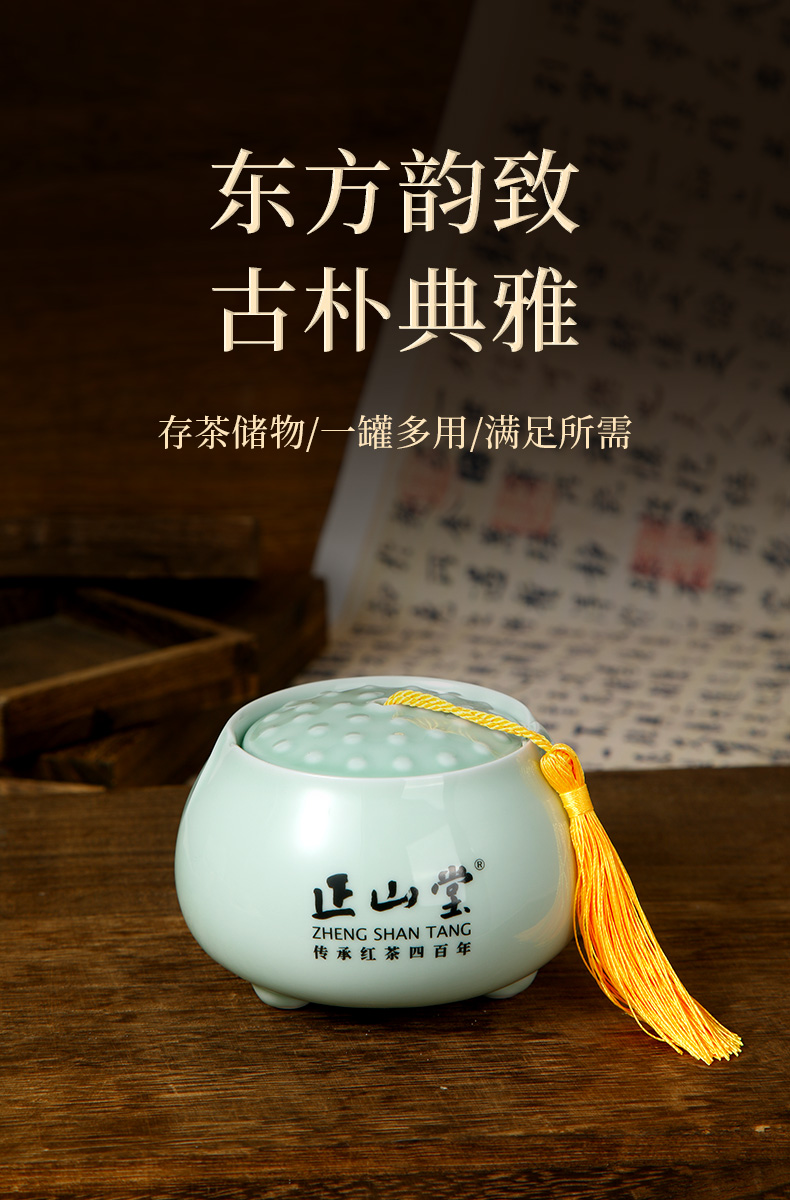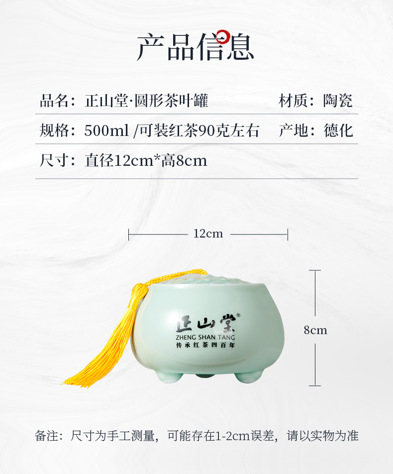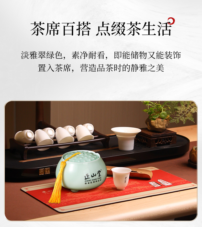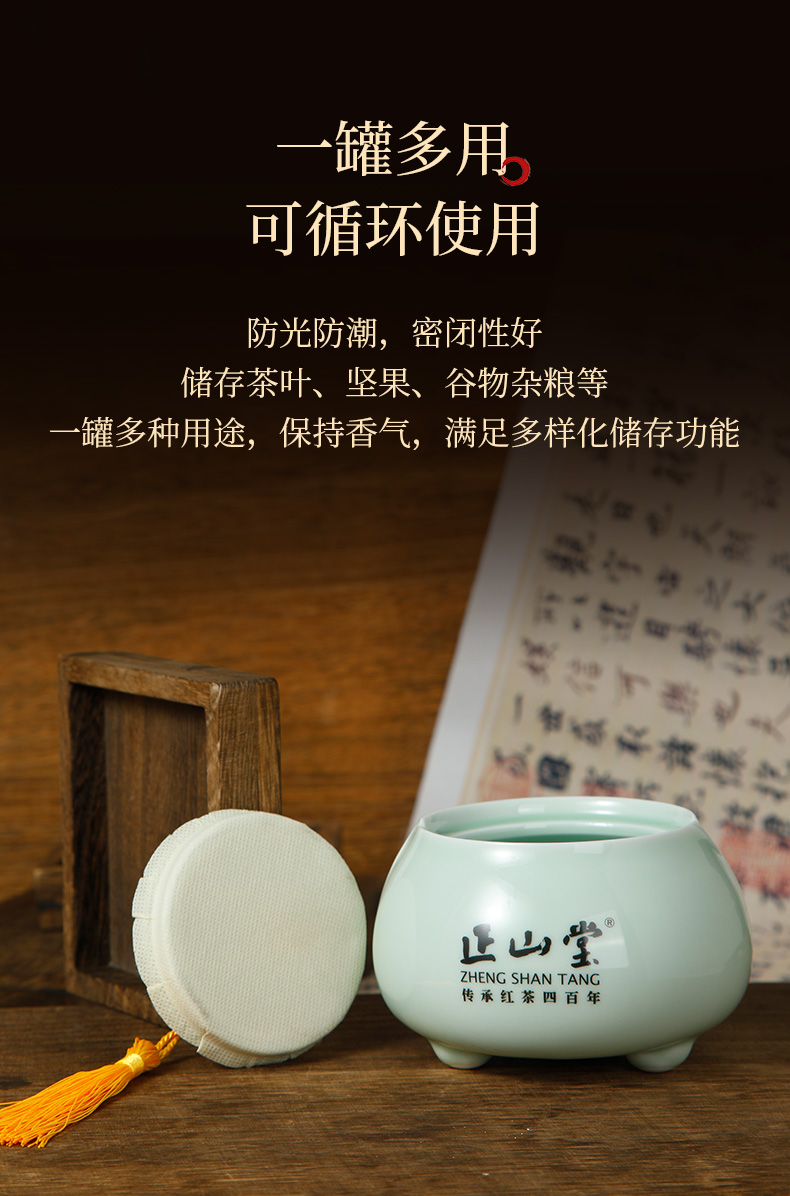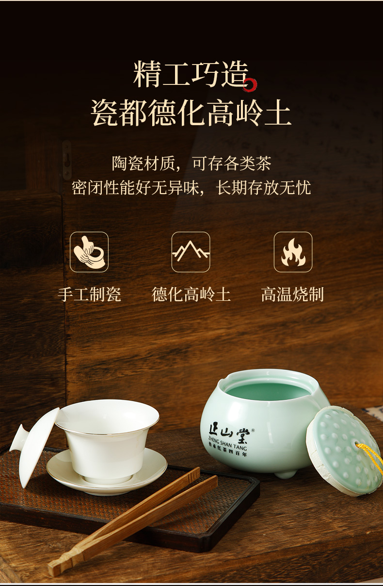 正山堂 陶瓷圆形茶叶罐 瓷都德化密封储存茶叶 500ml茶具