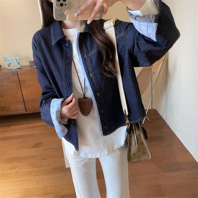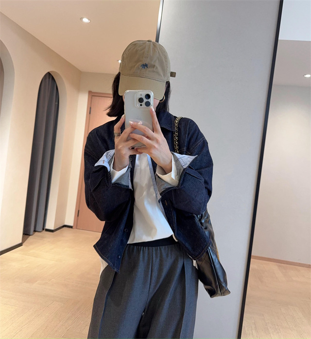 浅蓝色的格纹面料与靛蓝色的牛仔面料相撞,吸睛且耐看。