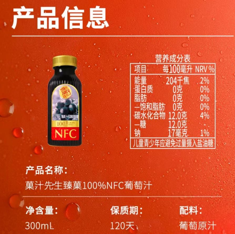 果汁先生 臻菓100%NFC 葡萄汁300ml