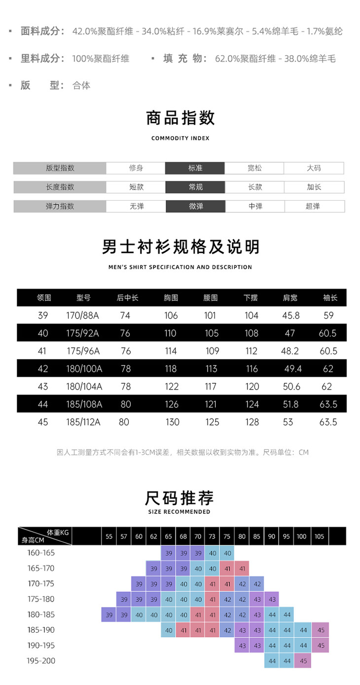 【远红外羊毛内胆保暖衬衫 】加厚保暖可机洗衬衫 商务正装长袖衬衣CT408