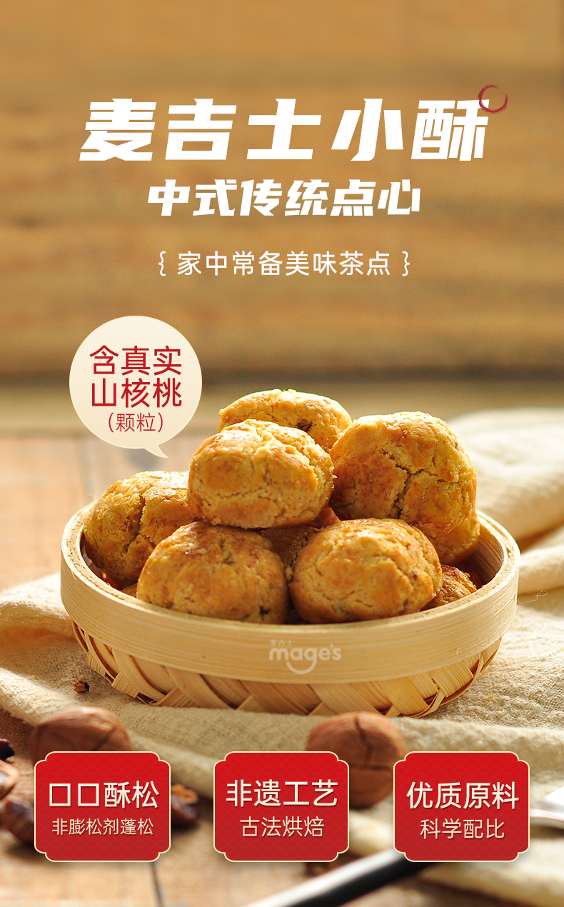 麦吉士小酥200g/罐装 芝麻/核桃/花生/榛子酥休闲食品 营养健康