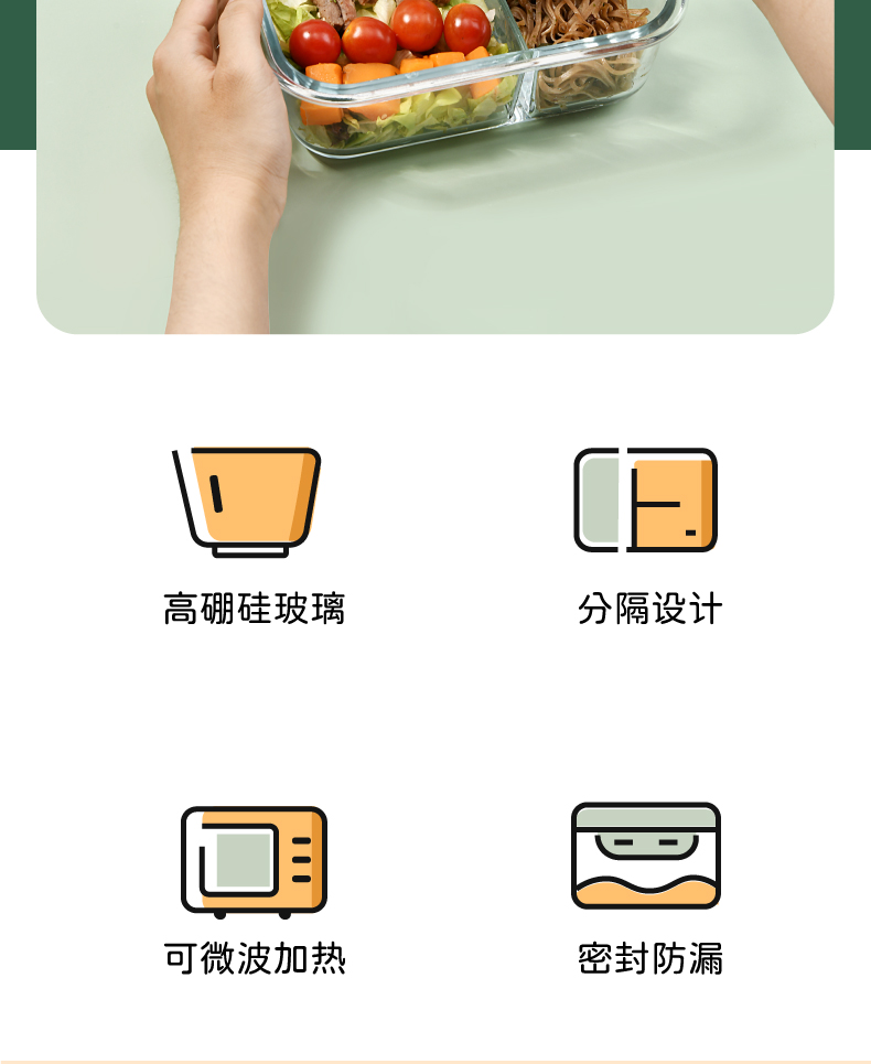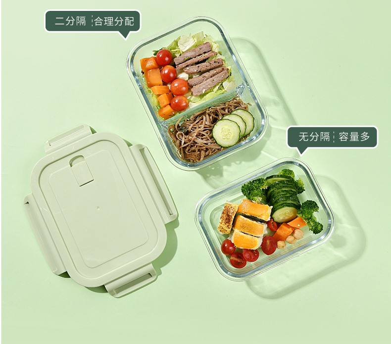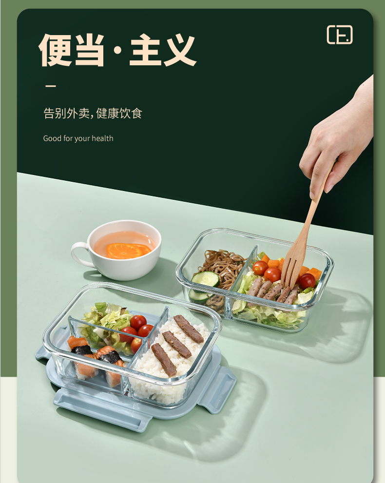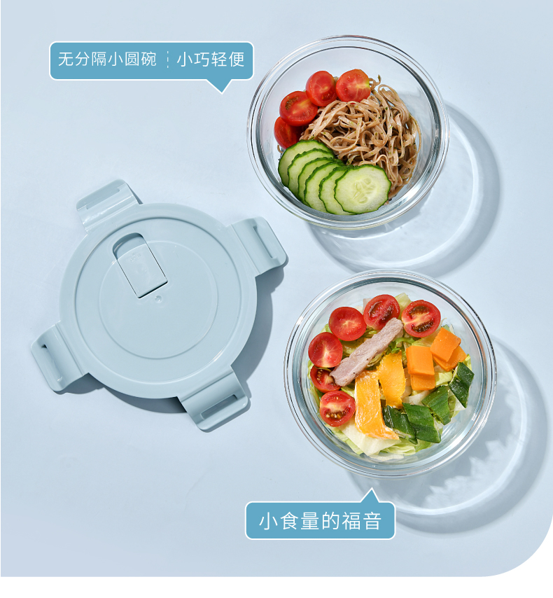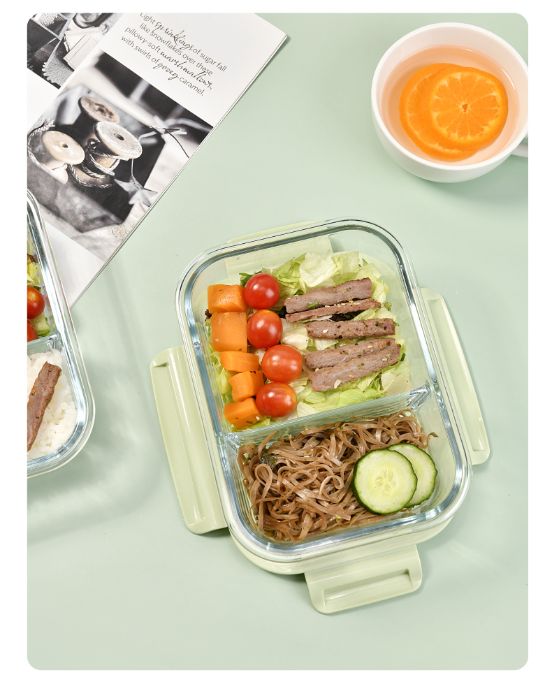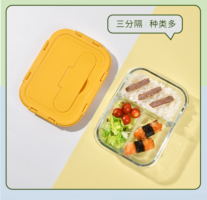 山重山保鲜碗玻璃饭盒微波炉专用碗盒上班族学生带饭高硼硅玻璃便当盒带盖套装餐盒大容量密封碗 【顺丰】2隔断1L+640ml+包+餐具【天蓝】