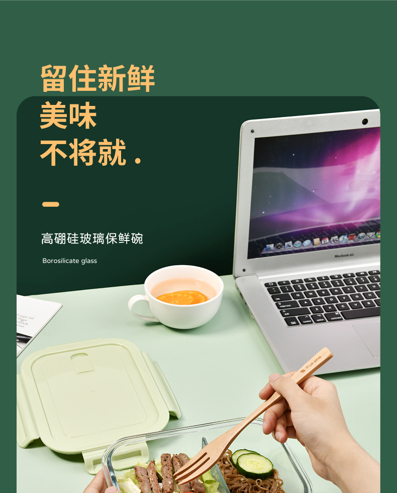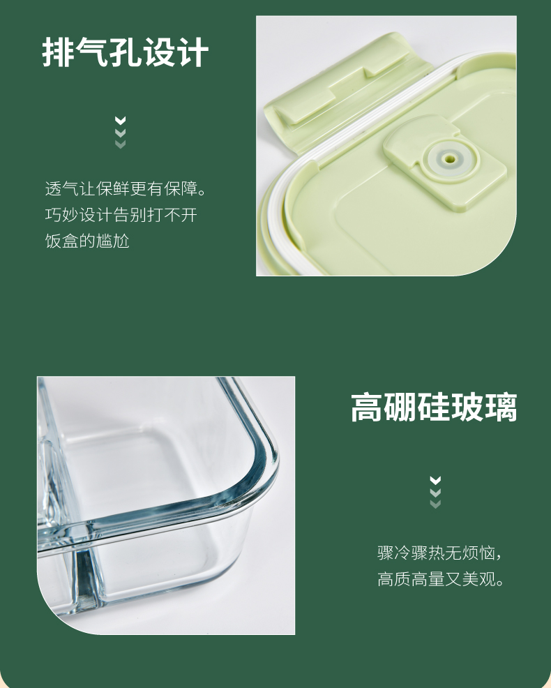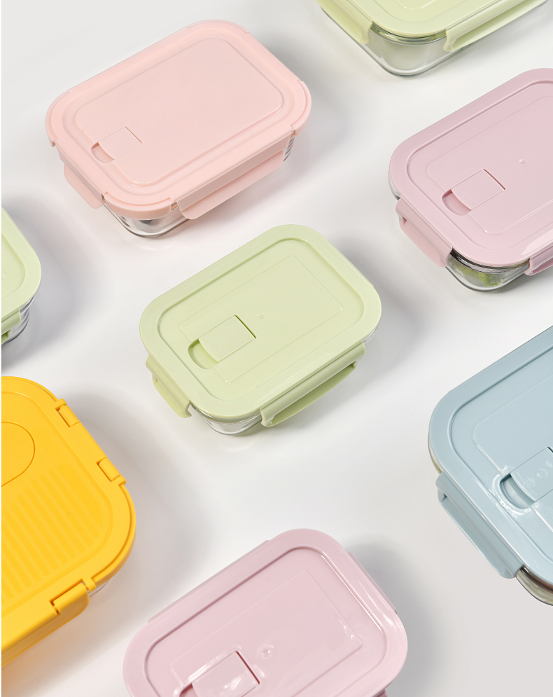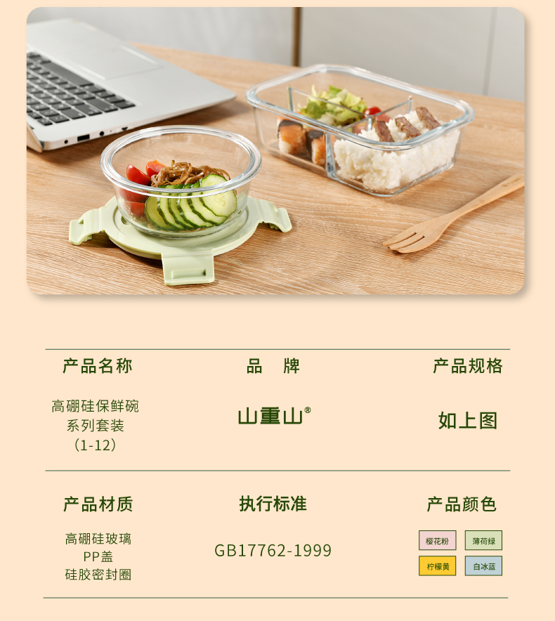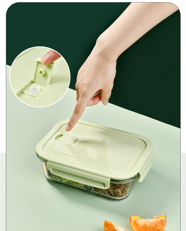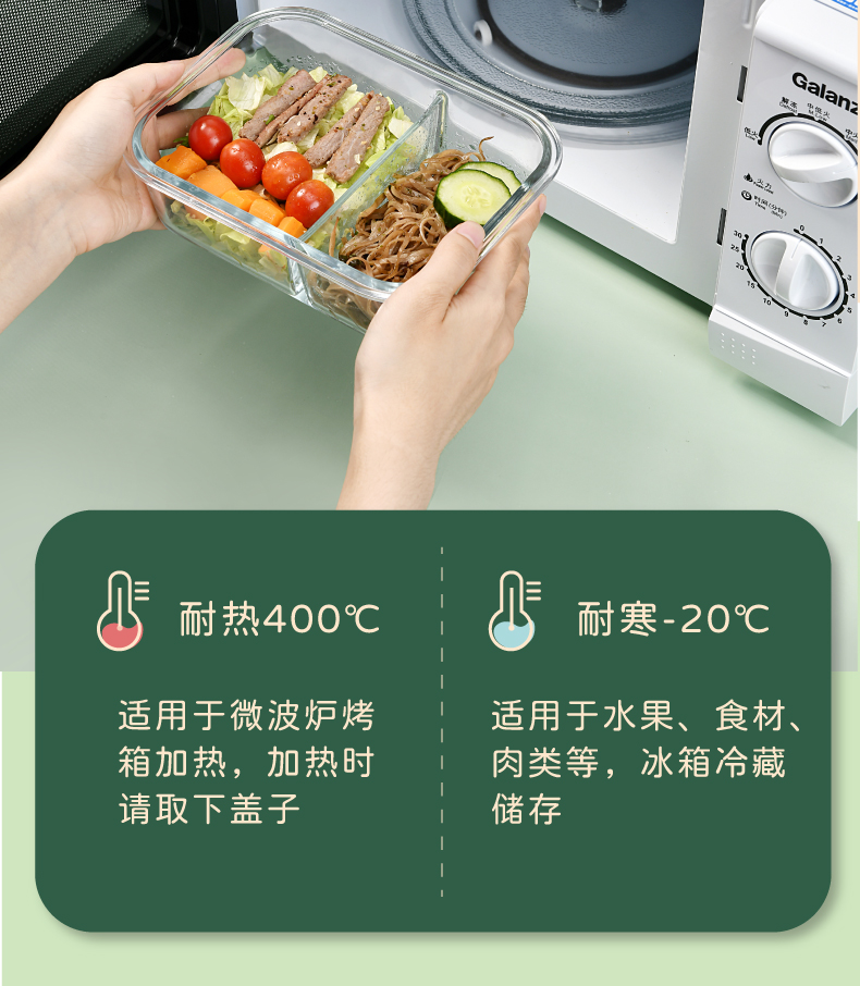 山重山保鲜碗玻璃饭盒微波炉专用碗盒上班族学生带饭高硼硅玻璃便当盒带盖套装餐盒大容量密封碗 【顺丰】2隔断1L+640ml+包+餐具【天蓝】