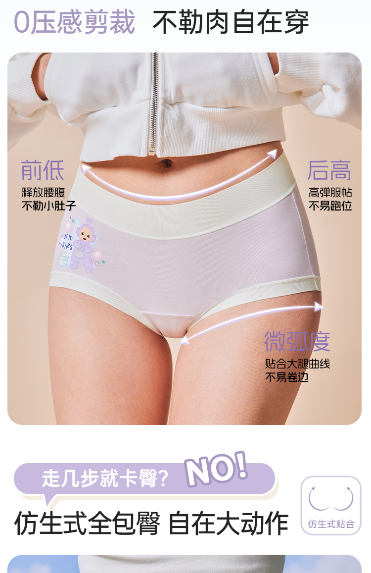 奶糖派大码内裤女天线宝宝联名中高腰加长档新款不夹臀女士三角裤