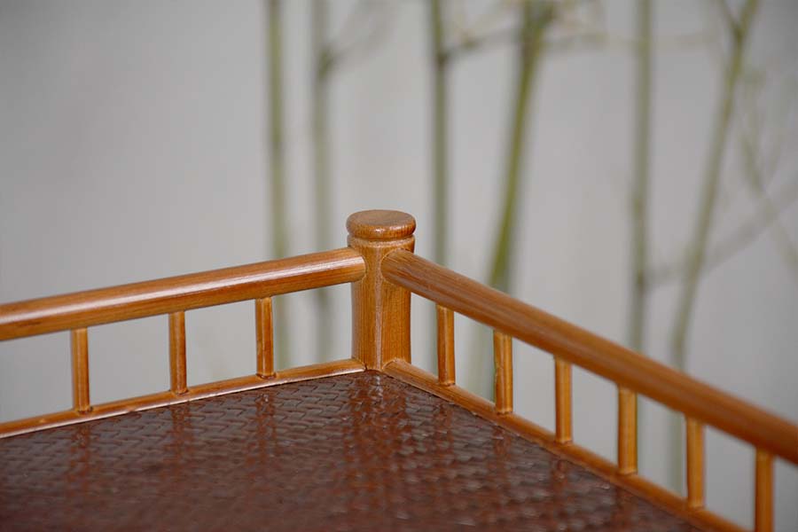 竹制半包围栏设计,运用自然洒脱的榫卯工艺,