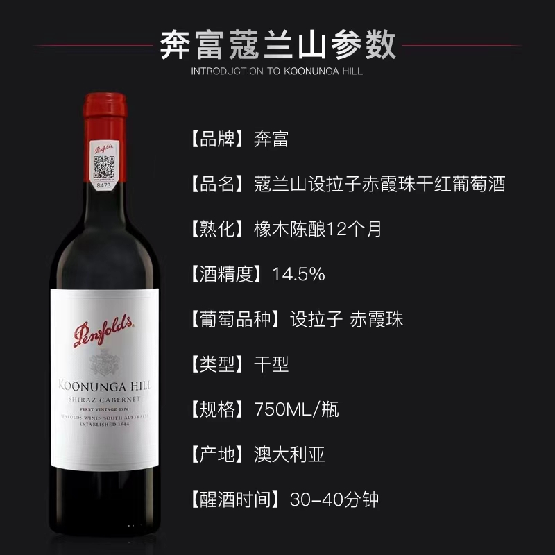 【行货】澳大利亚奔富蔻兰山设拉子赤霞珠干红葡萄酒