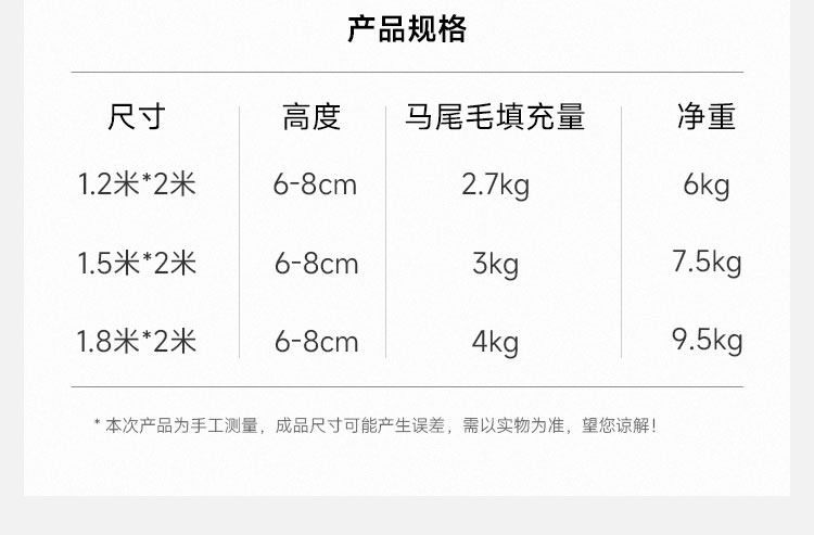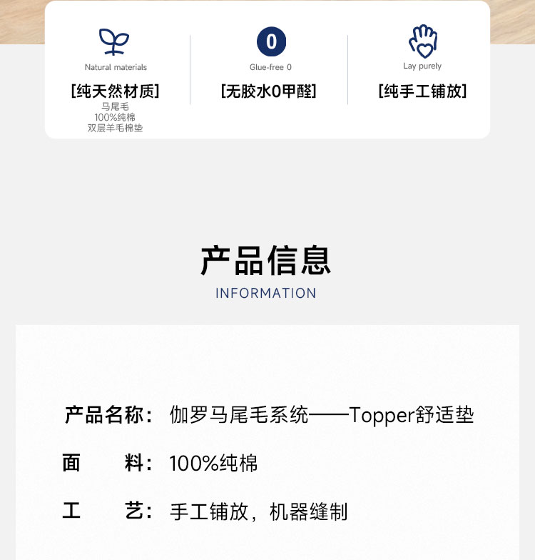 伽罗 JALO 马尾毛薄床垫(舒适垫)(下单后10个工作日内发货)