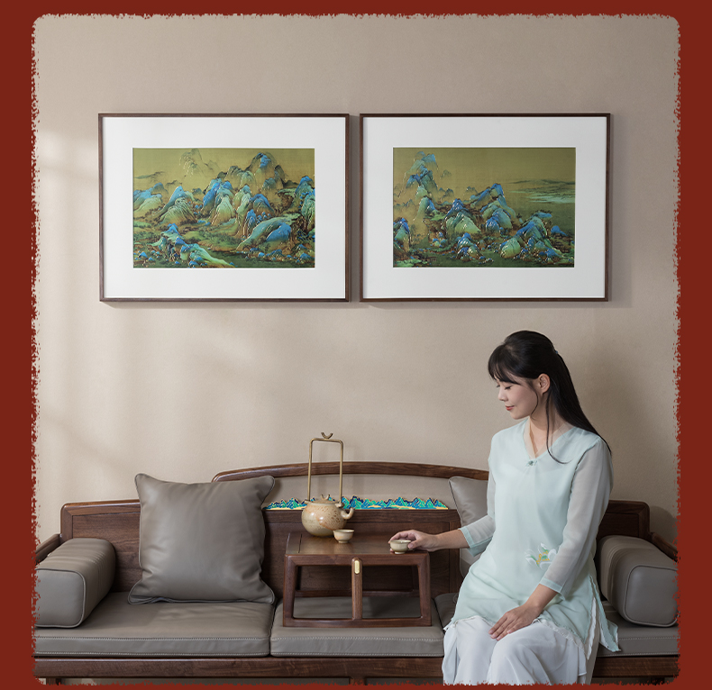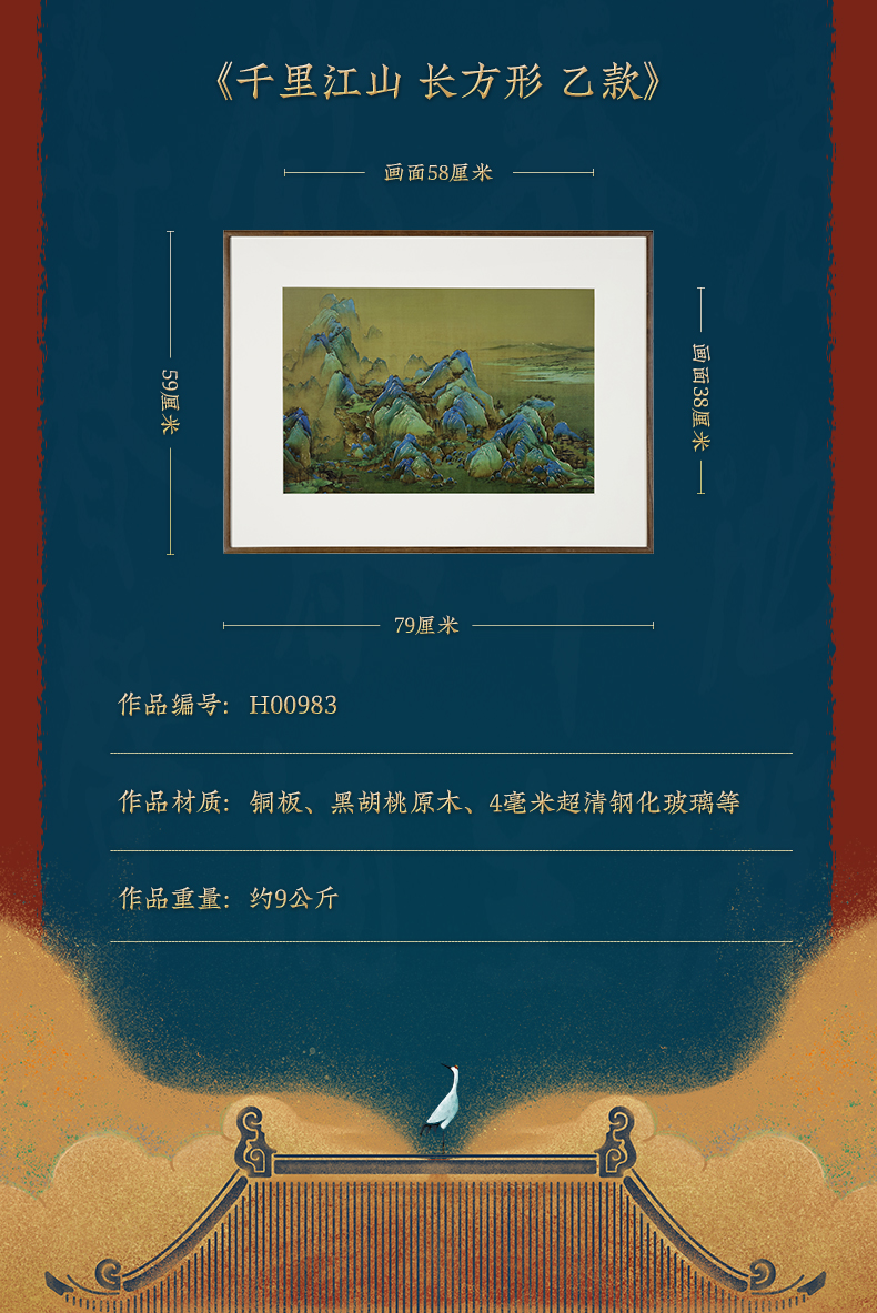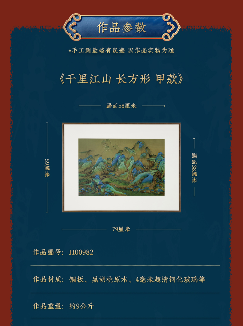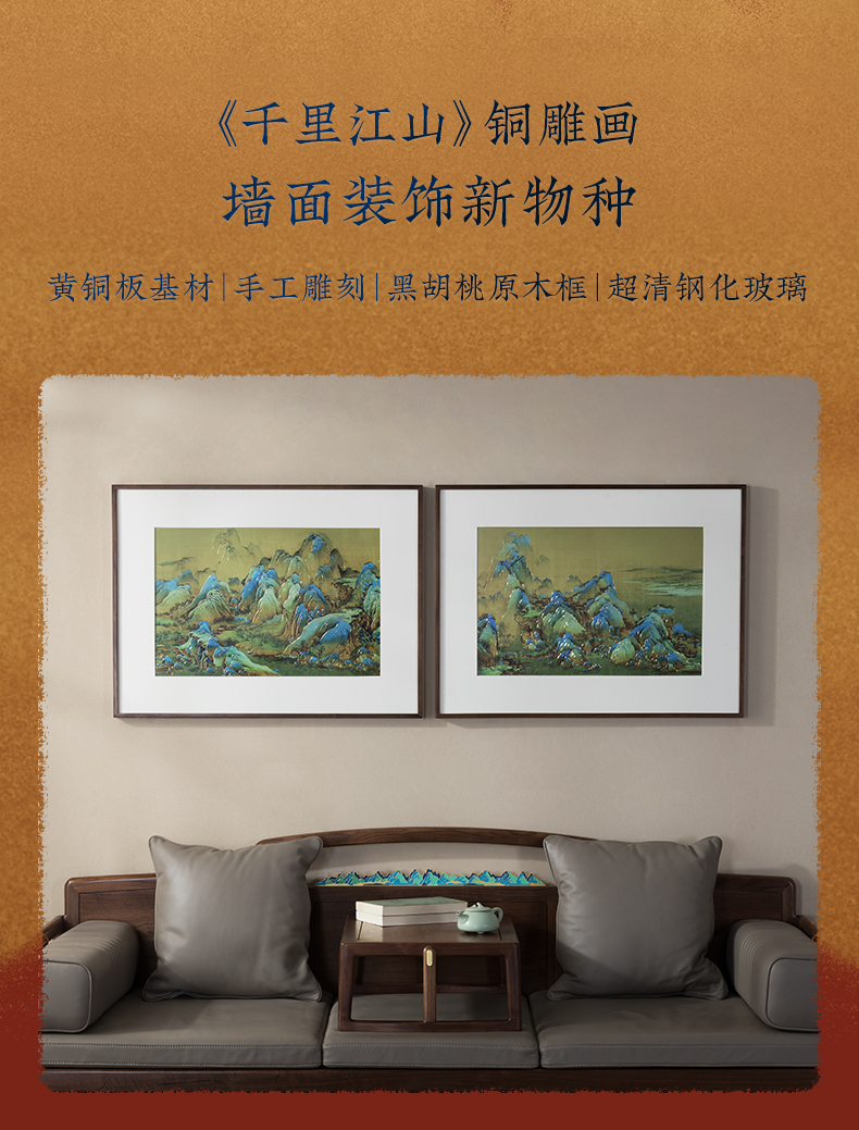 铜师傅 手工錾刻 铜雕画《千里江山 长方形》客厅背景墙装饰挂画