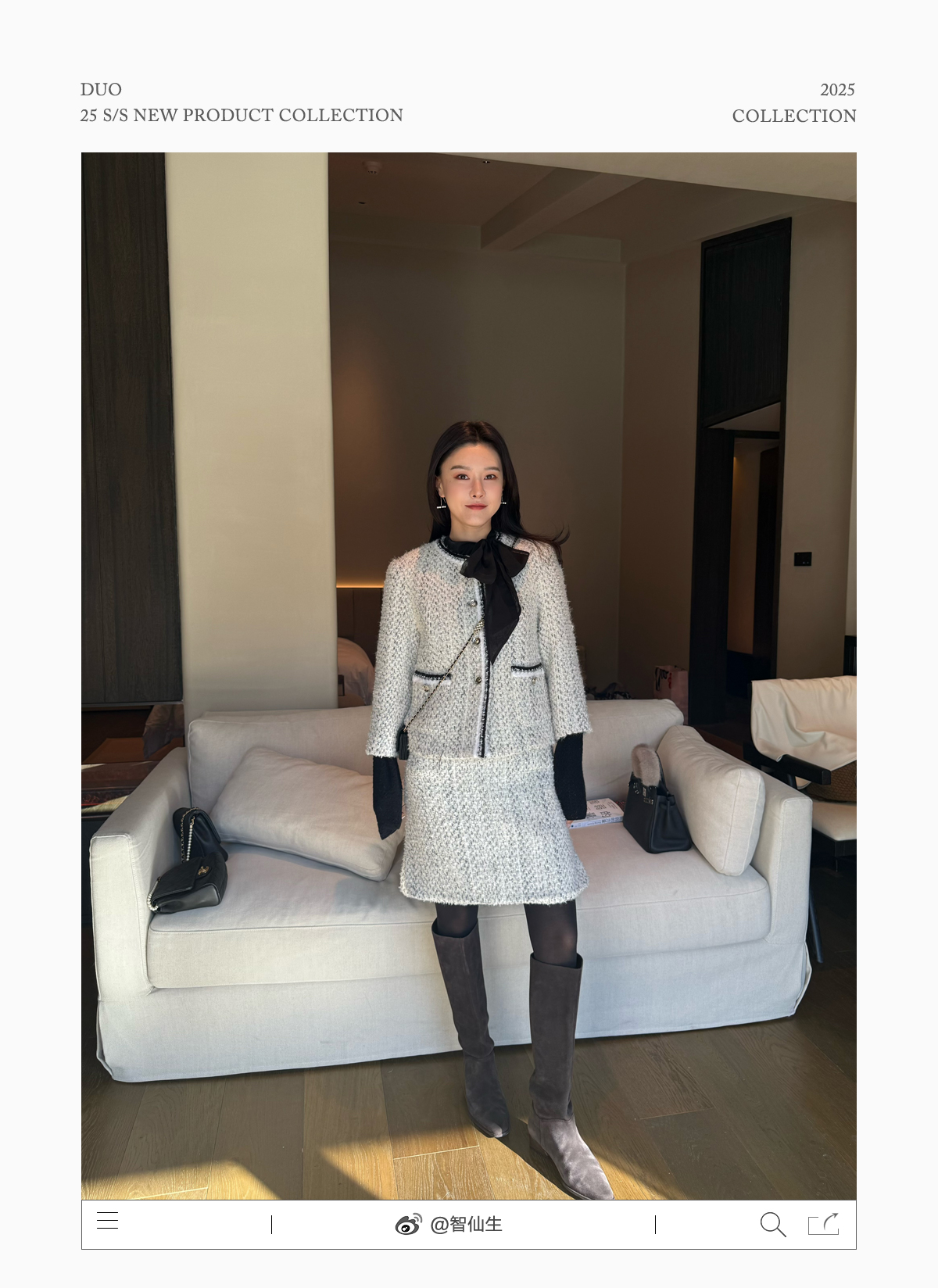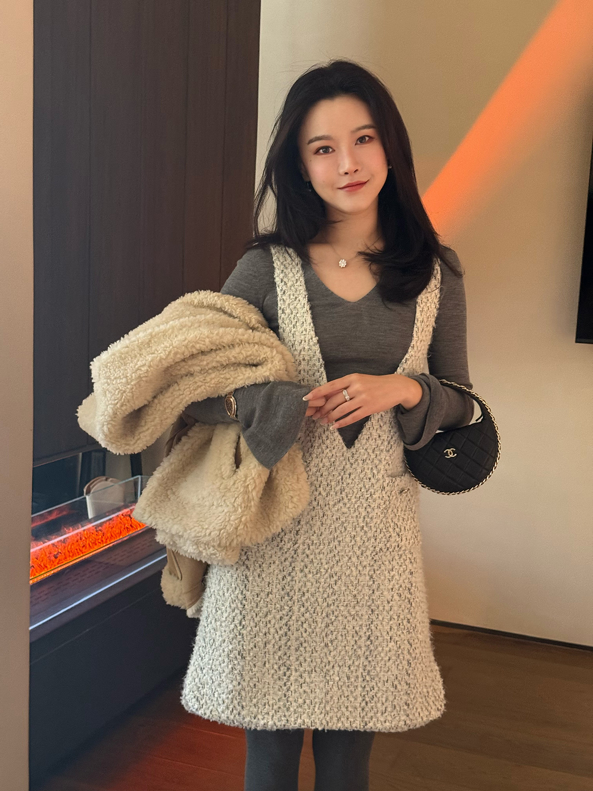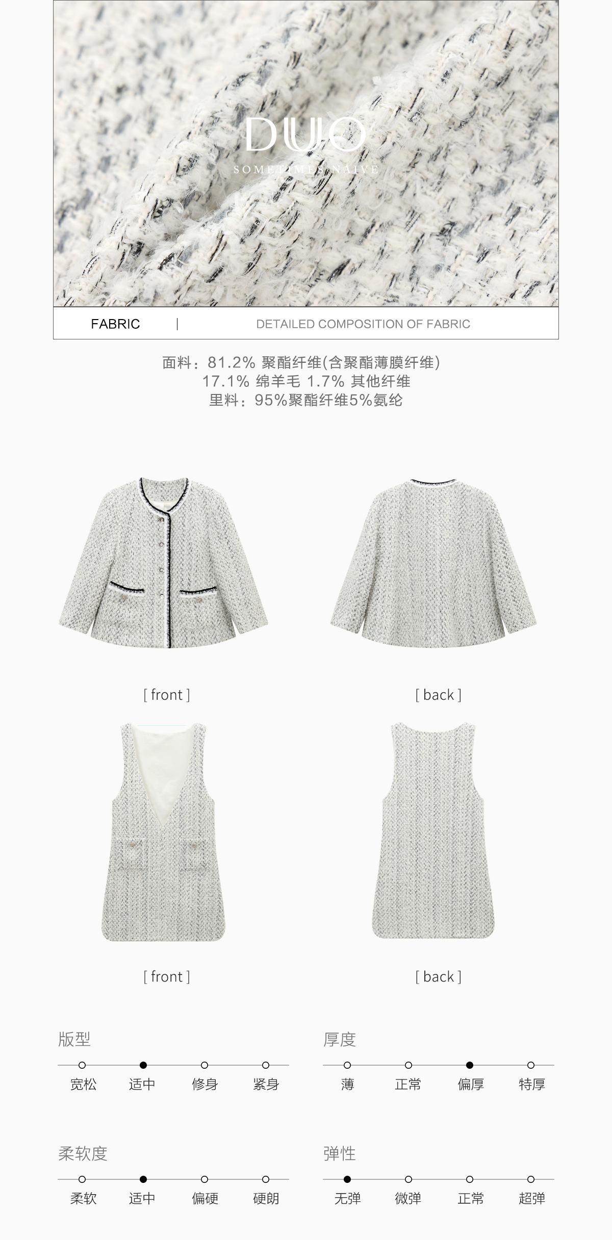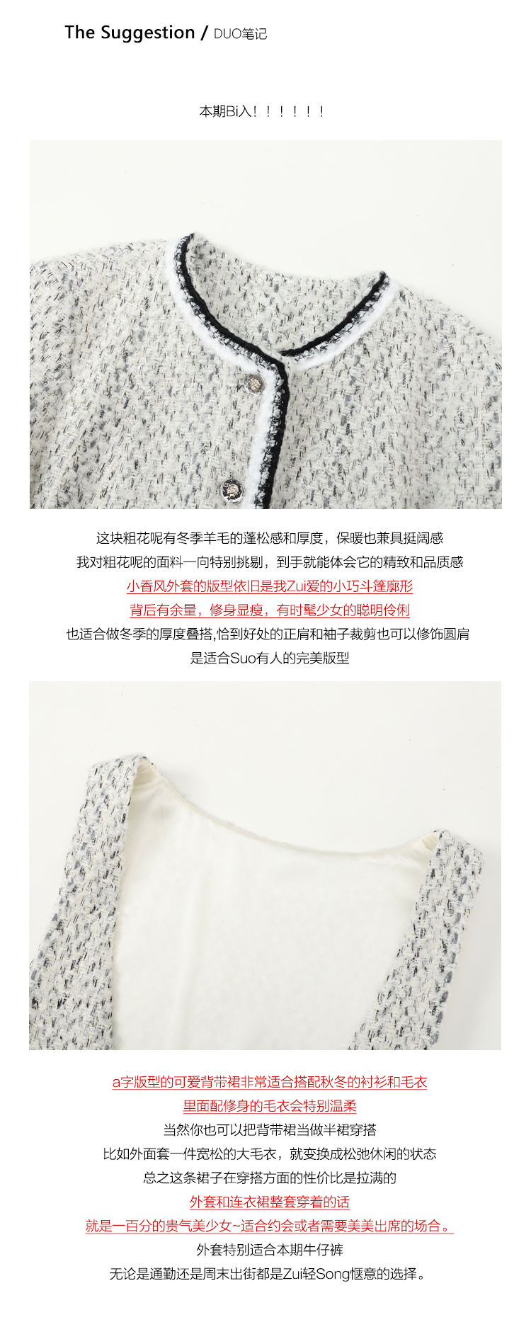 DUO智仙生 黑标 煎盐叠雪 白色粗花呢外套和背带连衣裙
