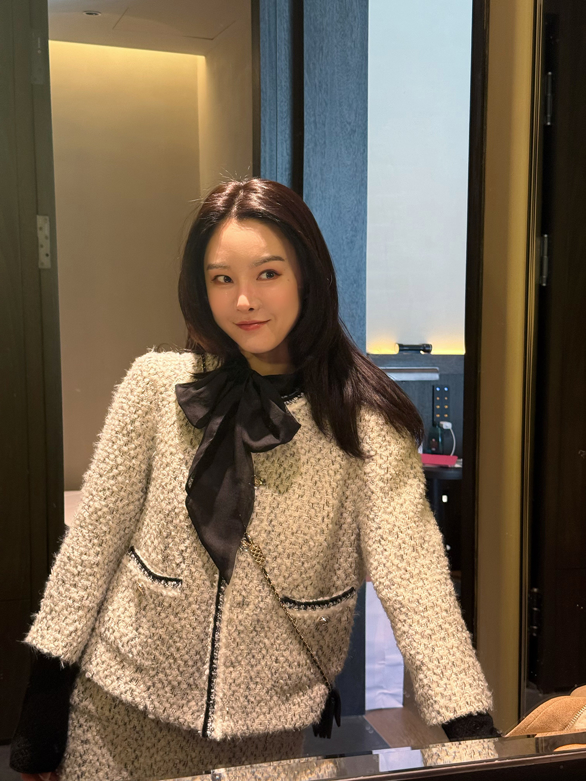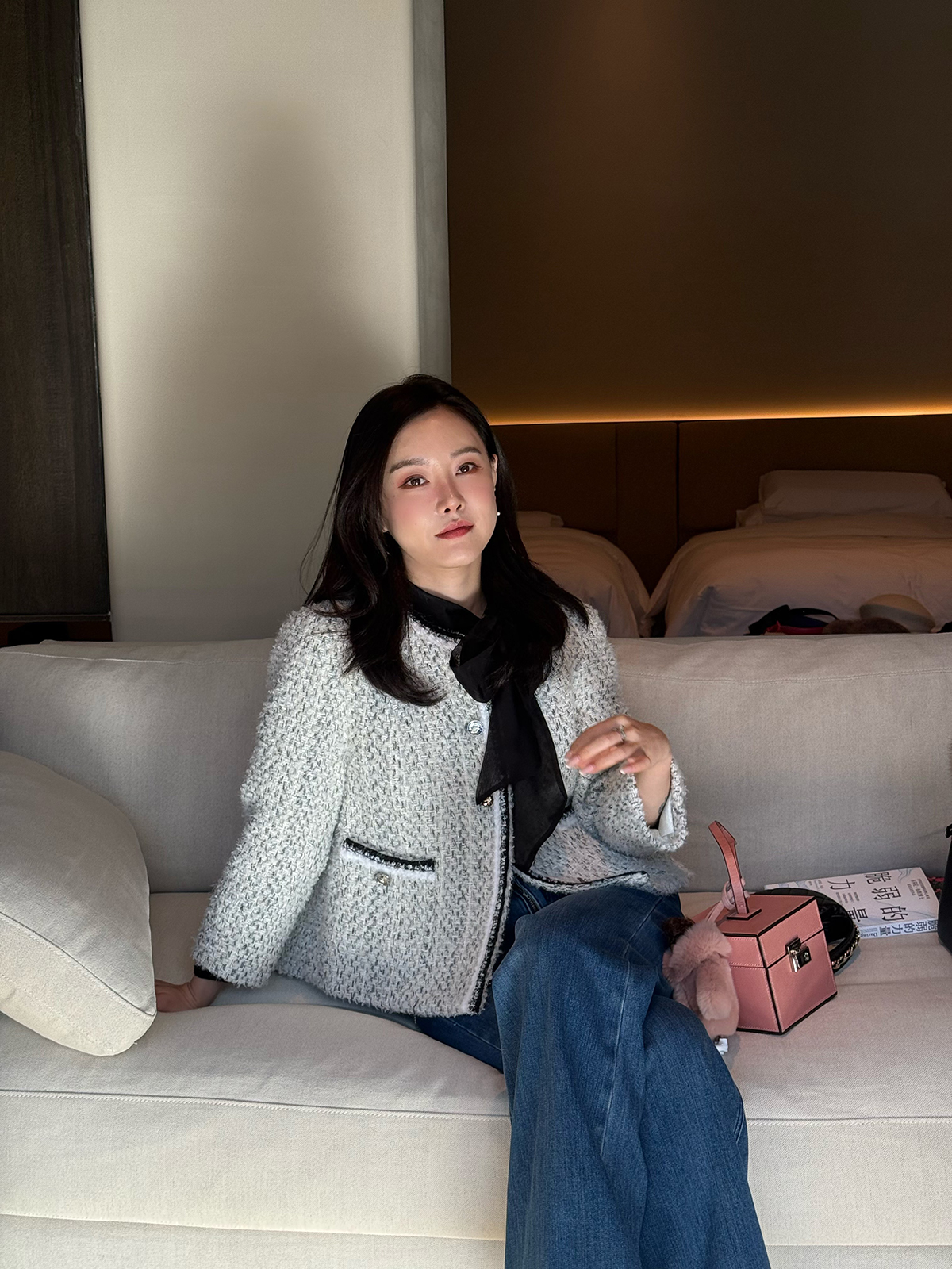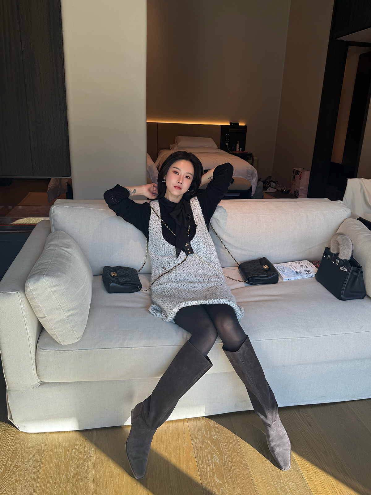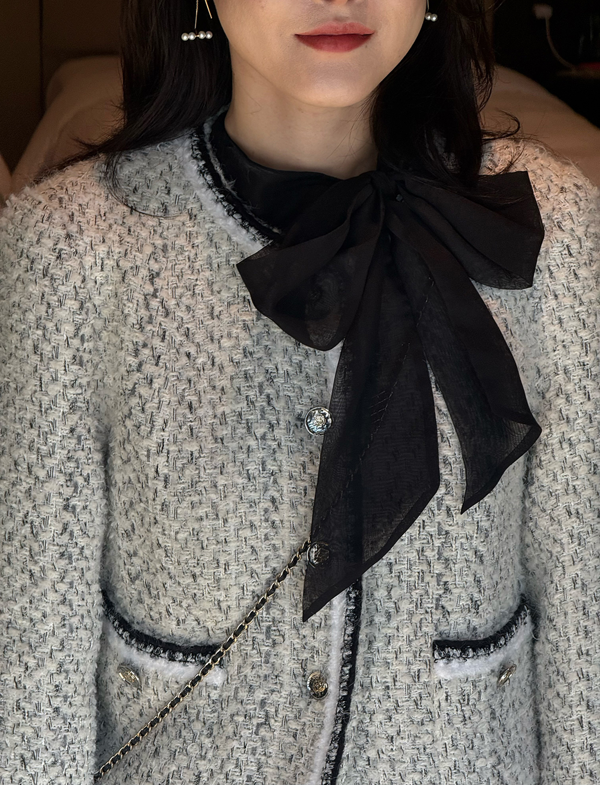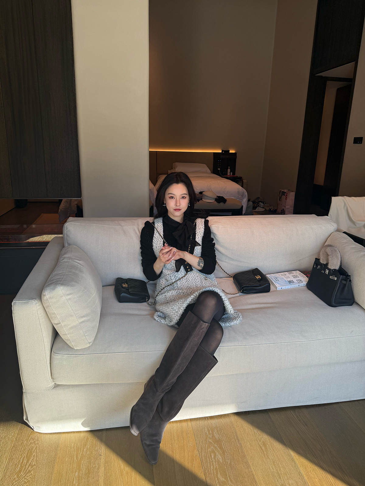 DUO智仙生 黑标 煎盐叠雪 白色粗花呢外套和背带连衣裙