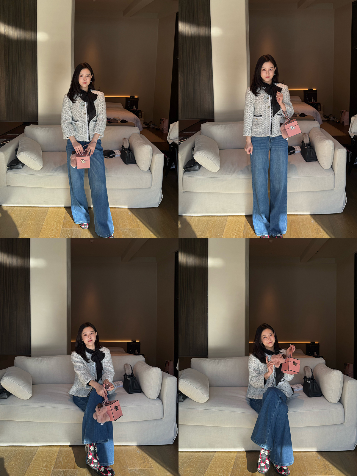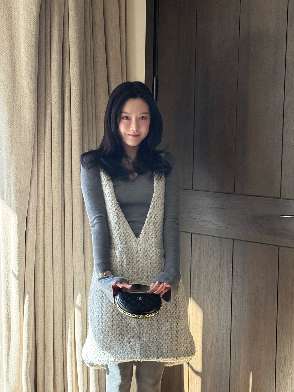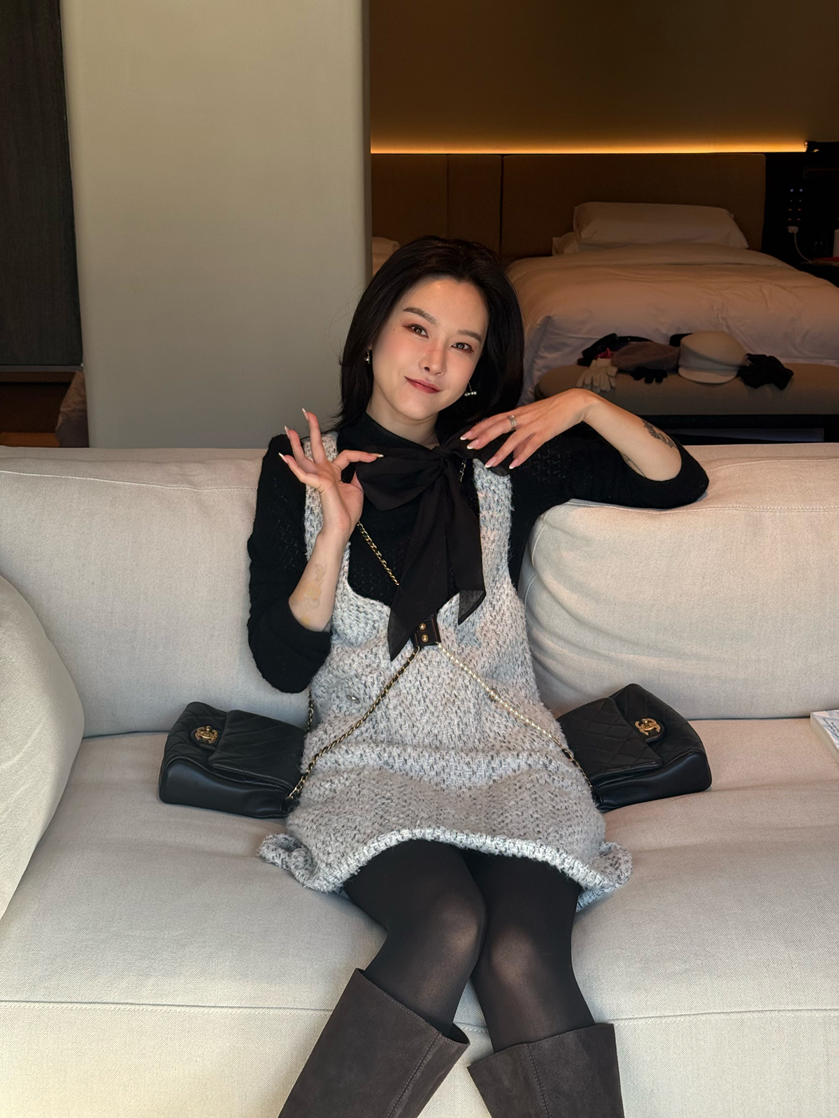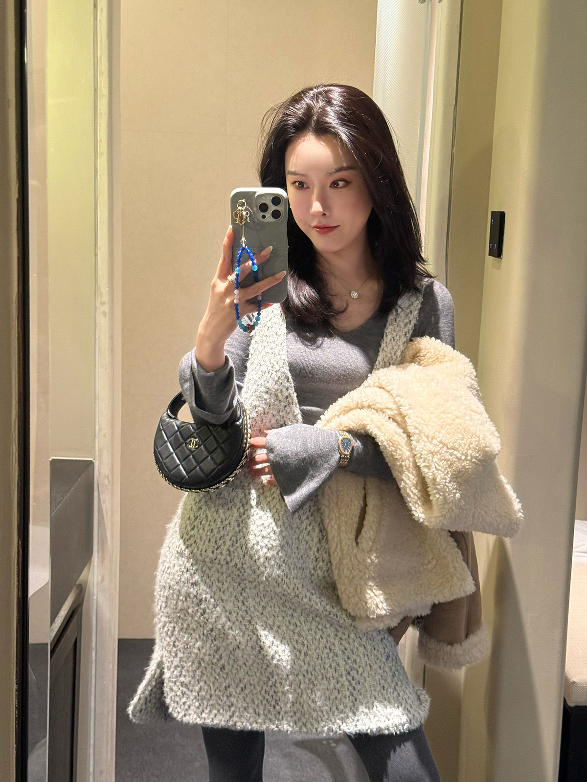DUO智仙生 黑标 煎盐叠雪 白色粗花呢外套和背带连衣裙