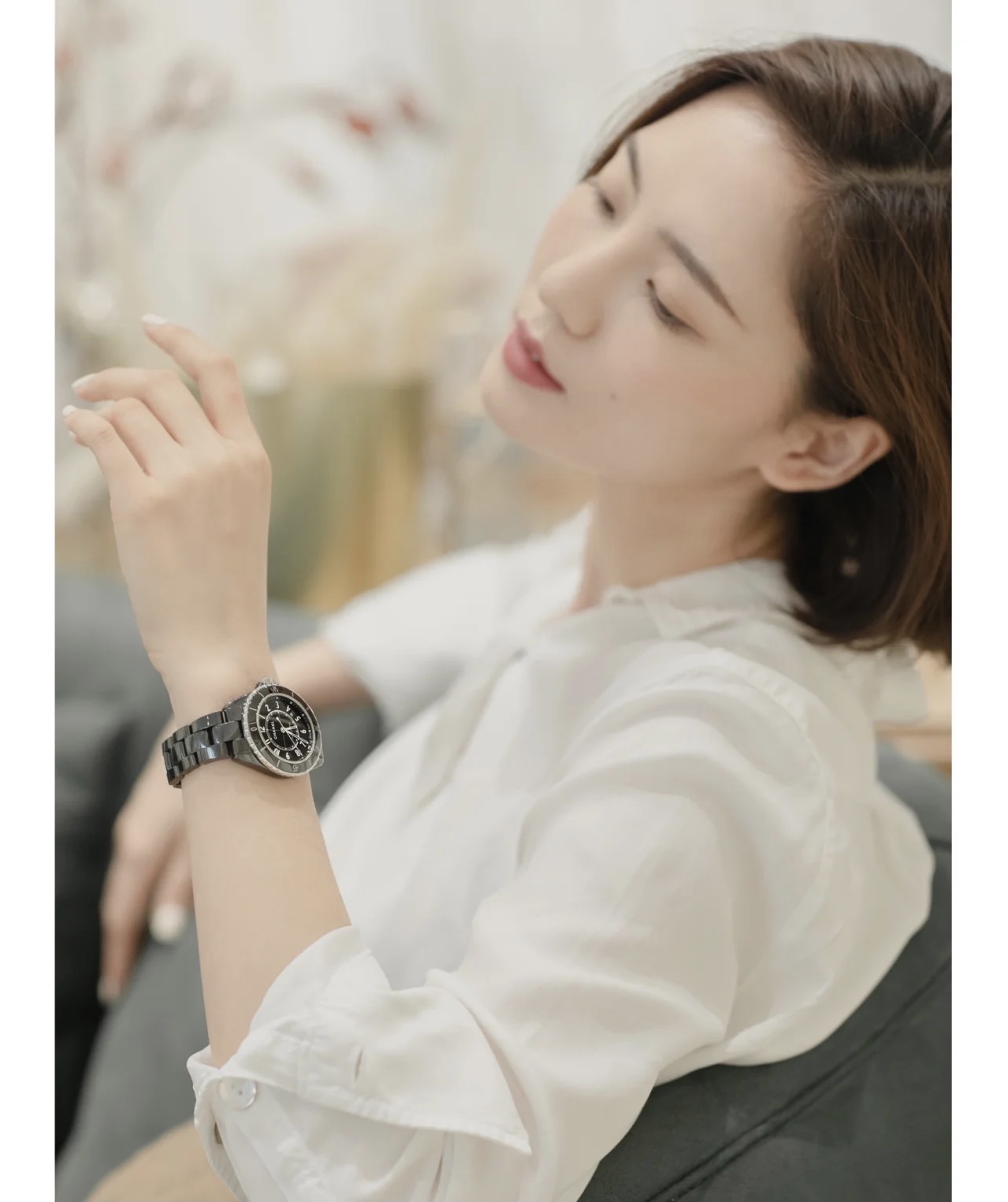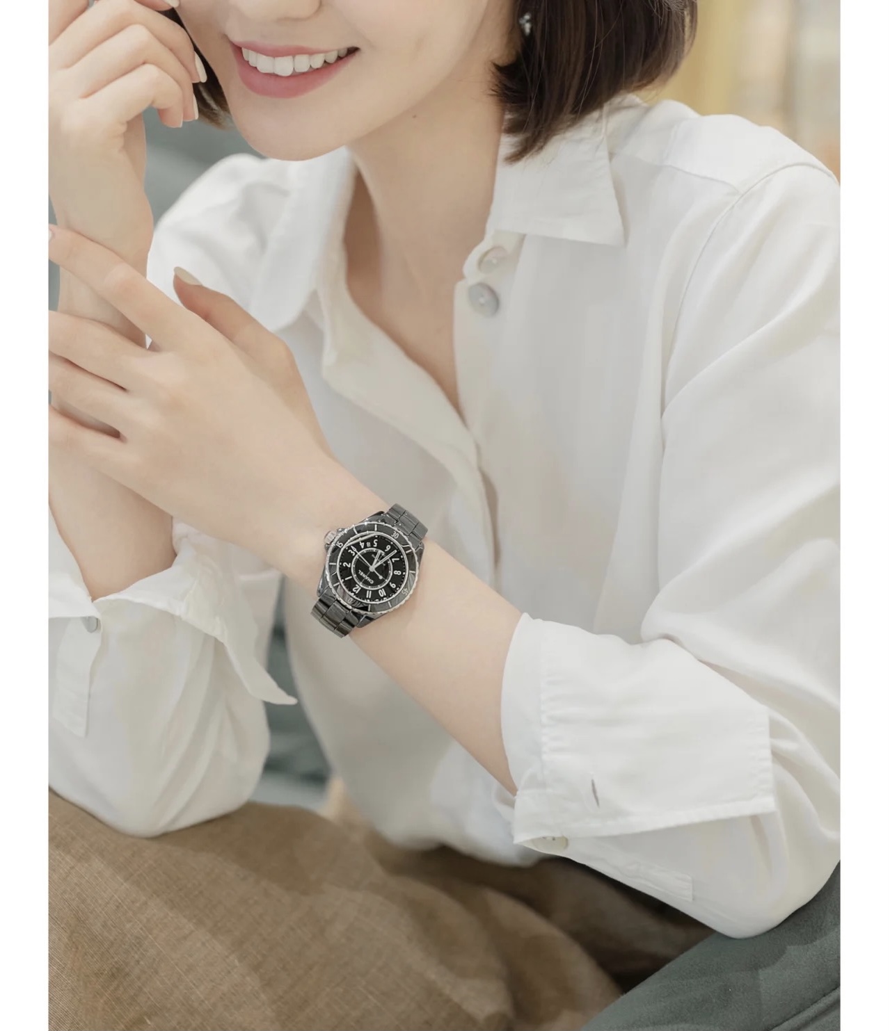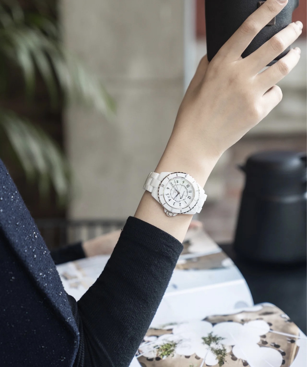 J12有极简流畅线条,刻度细致,指针纤巧,手表是用来戴的,不是用来盲目噱头,一定要冷静回归“耐用好打理”精密陶瓷材质,坚韧,硬度如钻石,比金属更耐磨,“一这一块,可以抵挡千军万马”