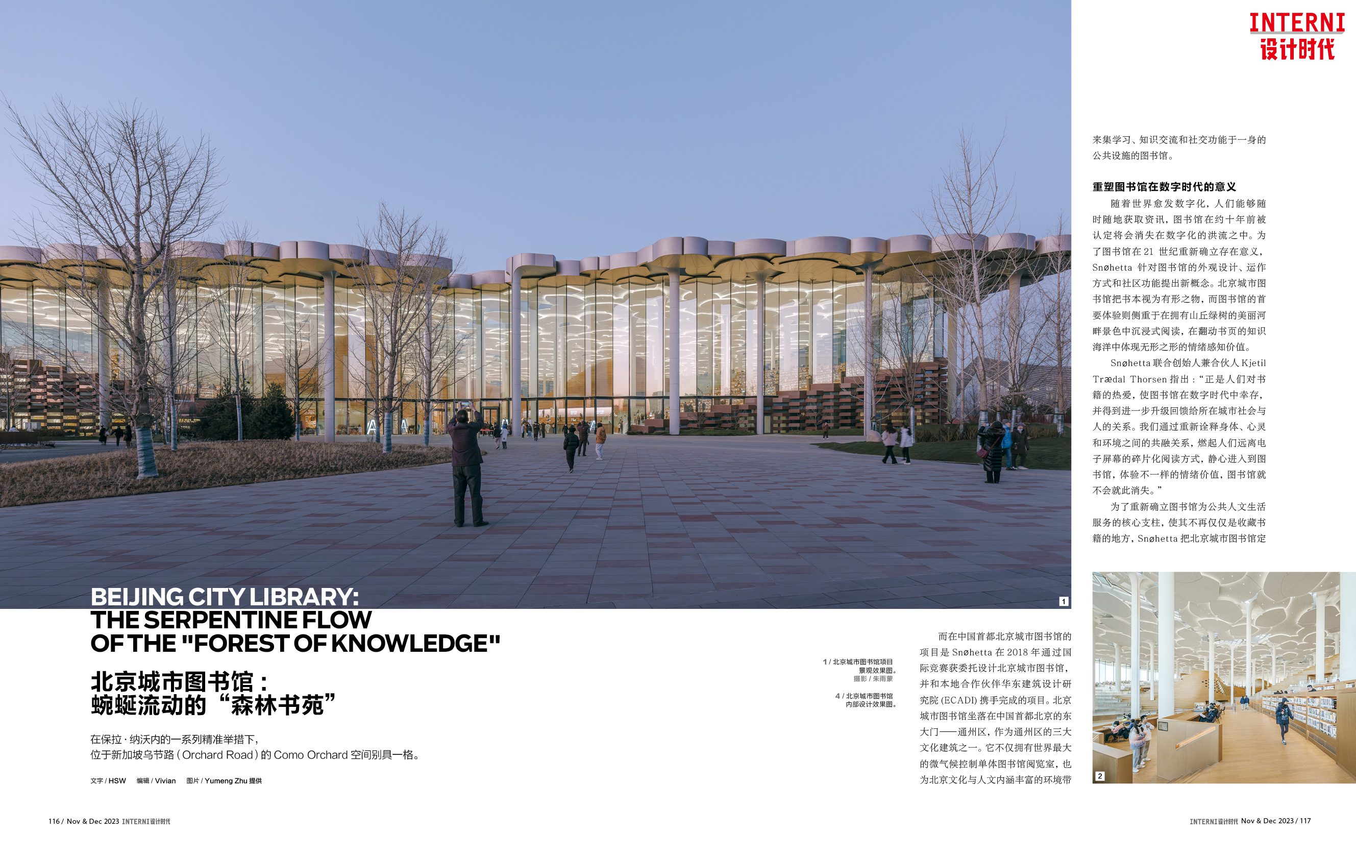 Snøhetta设计的北京市图书馆是全球最大的气候控制阅读空间,蜿蜒流动的“森林书苑”为北京带来了一个集学习、人文和社交场所的公共服务平台。