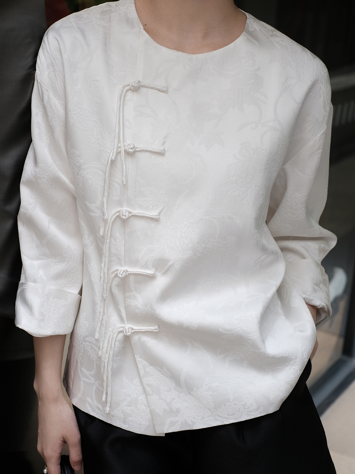盛唐婧 |新中式流苏浮雕外套-白色(售完不补-不退不换)