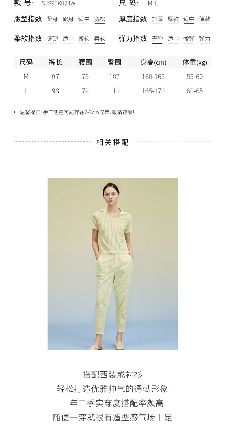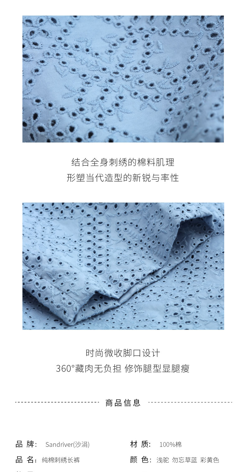 纯棉刺绣长裤 SJS95K024W