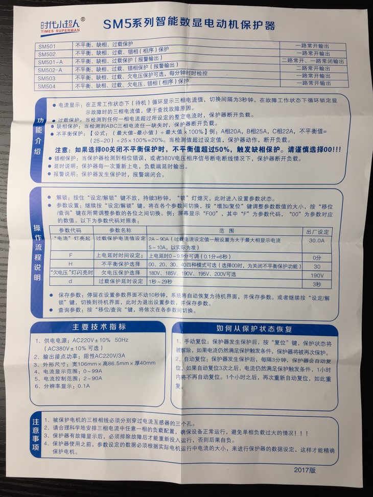 商品描述:小超人SM501智能数显电动机保护器 商品代码61014