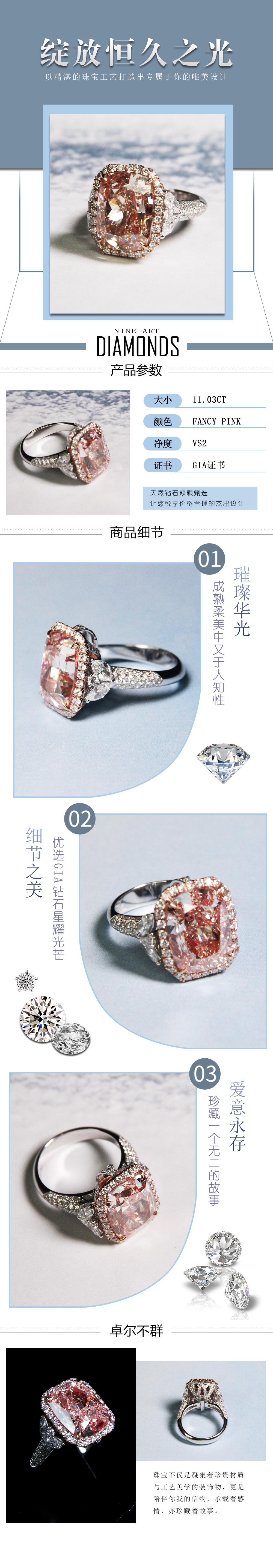 天然粉钻戒指11.03克拉