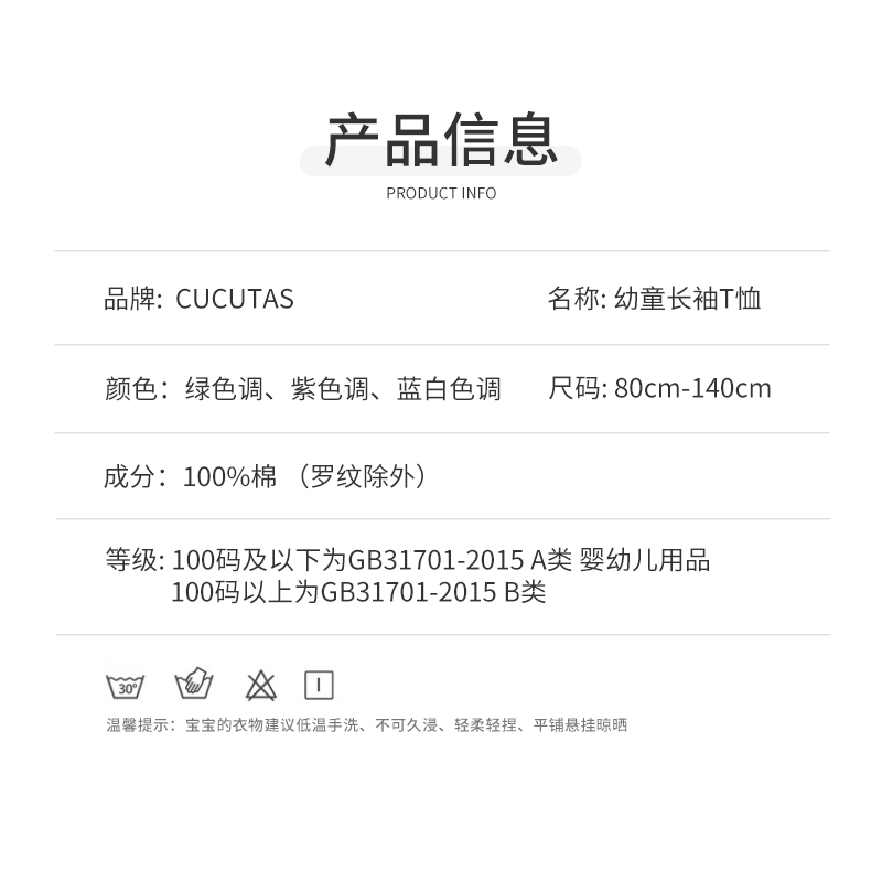 Cucutas幼童长袖T恤CY26SPW514蓝白色调/紫色调/绿色调(80#-140#)