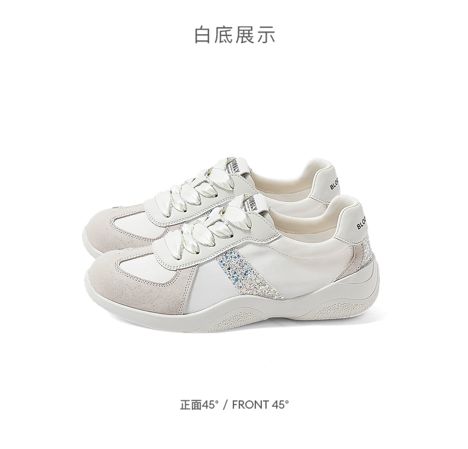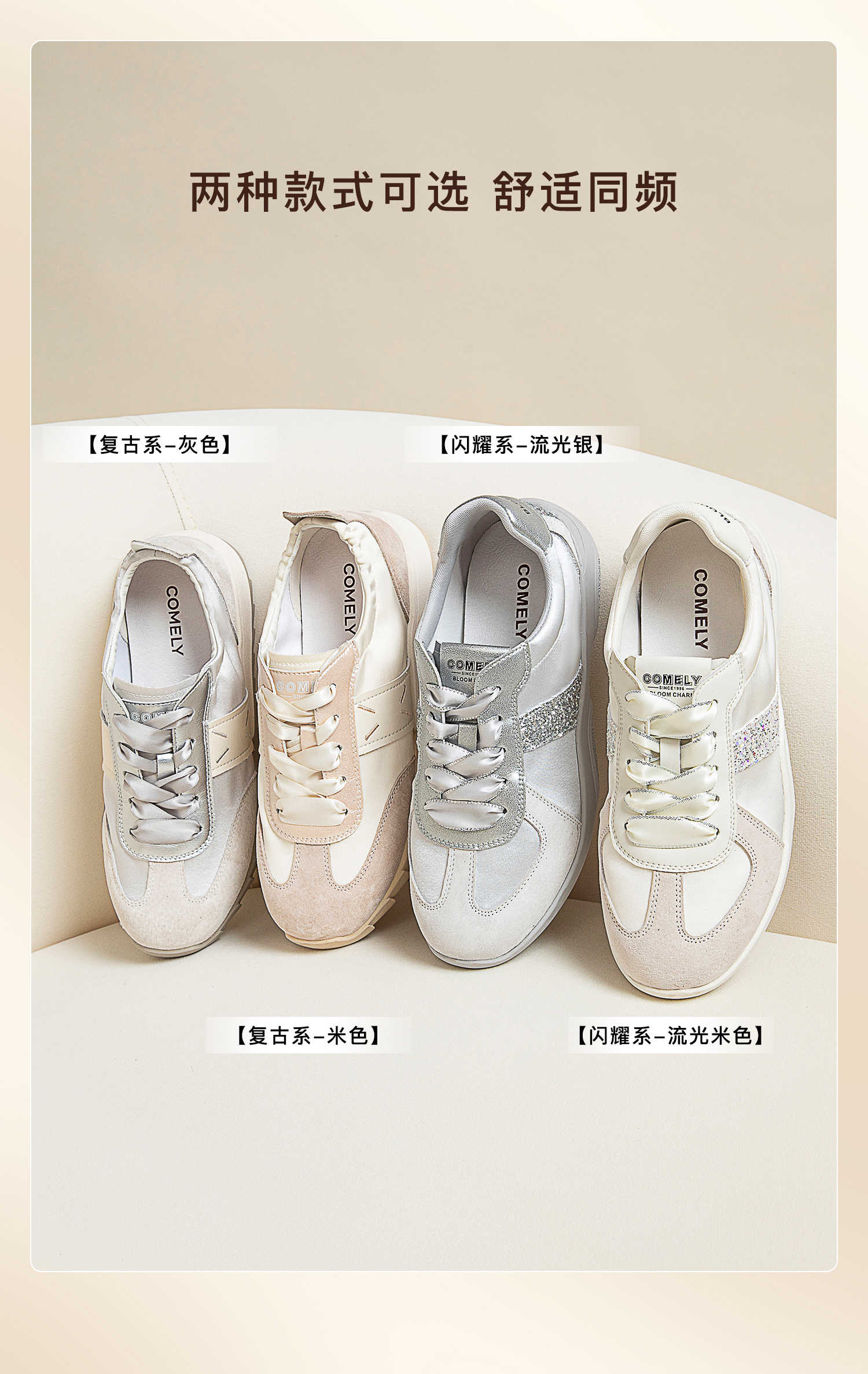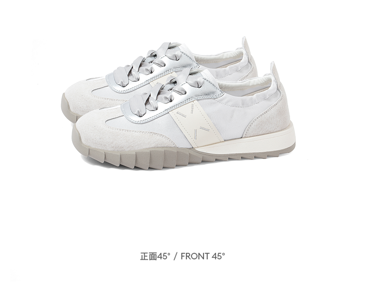 康莉KKF2K560拼款银色阿甘鞋秋透气百搭复古平底运动休闲德训鞋