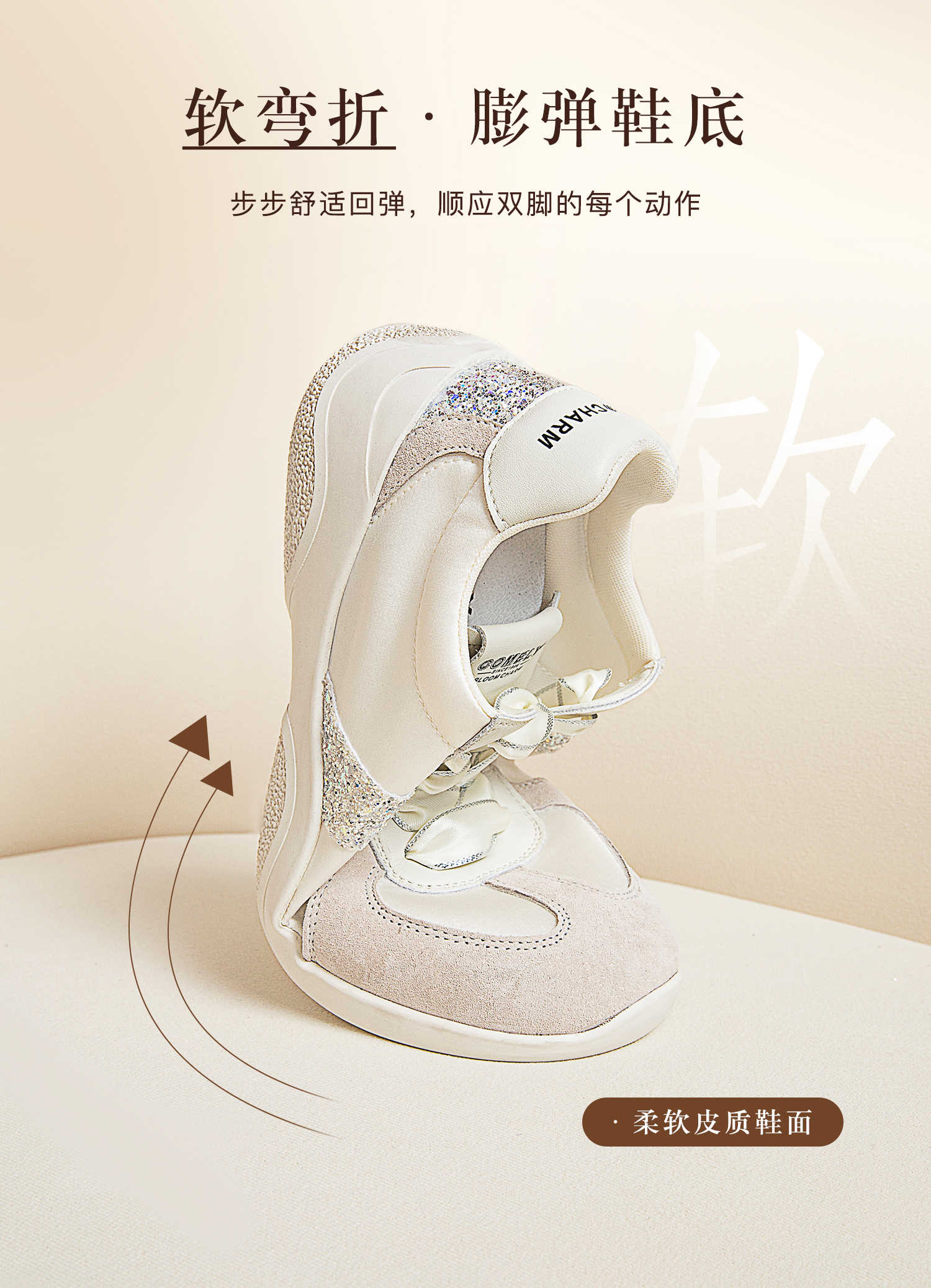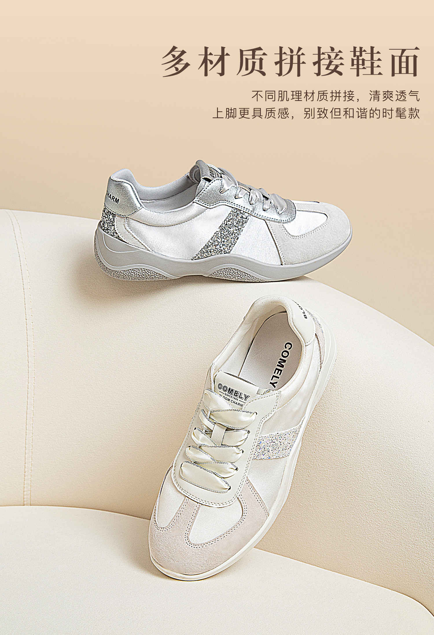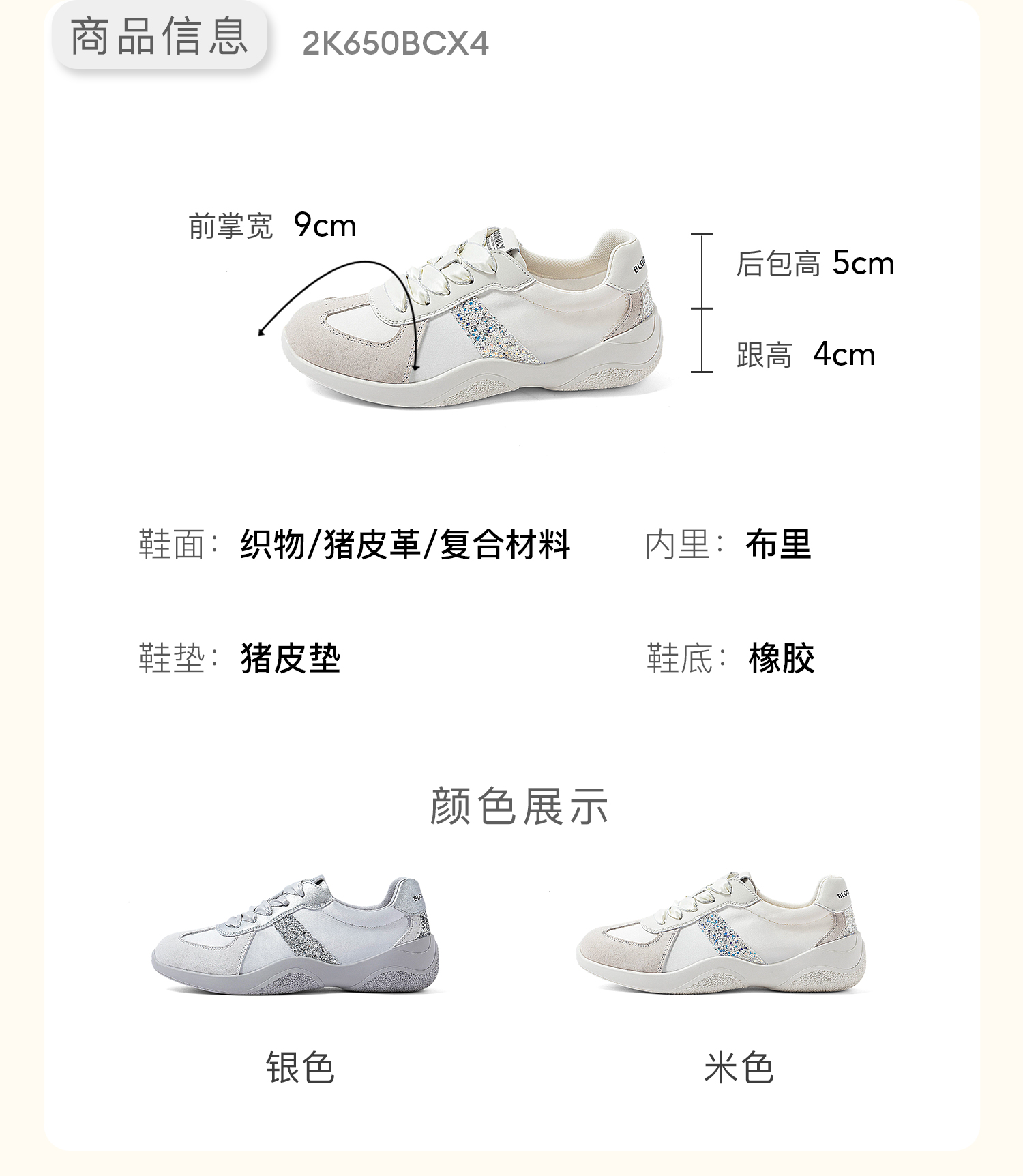 康莉KKF2K560拼款银色阿甘鞋秋透气百搭复古平底运动休闲德训鞋