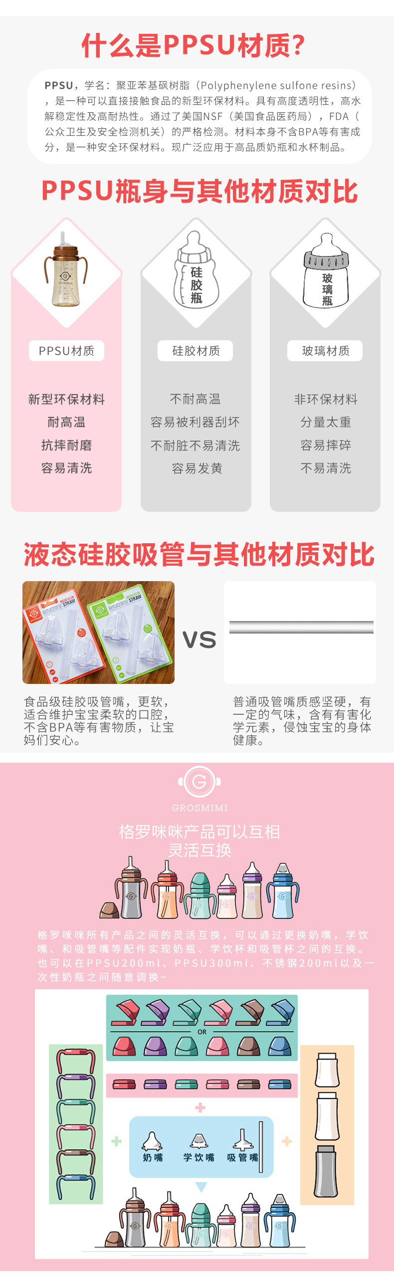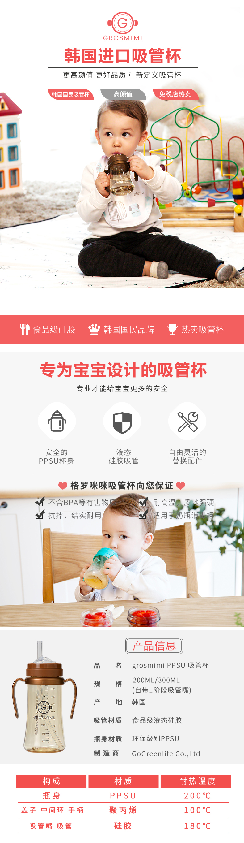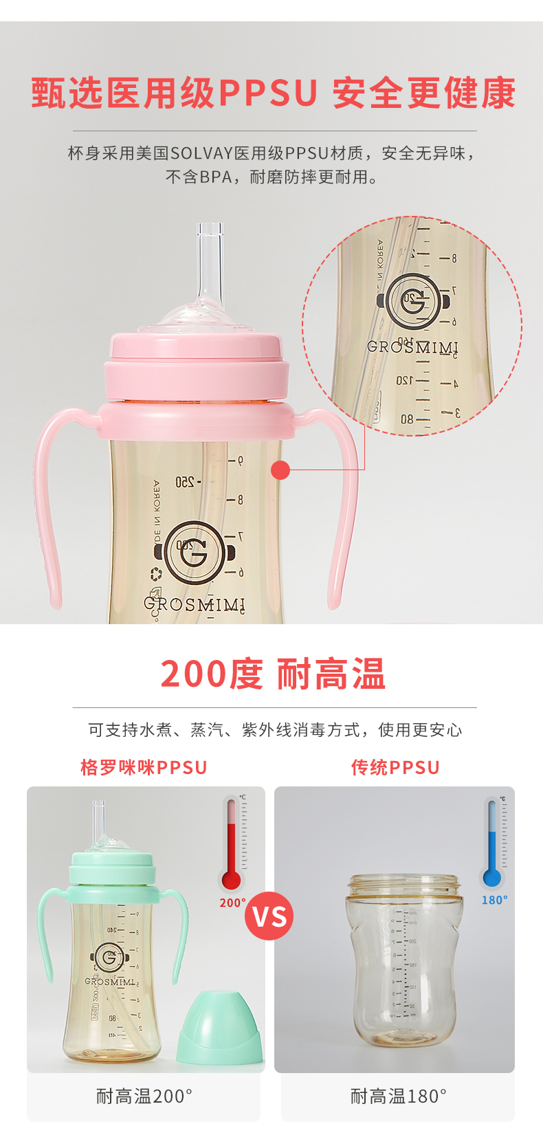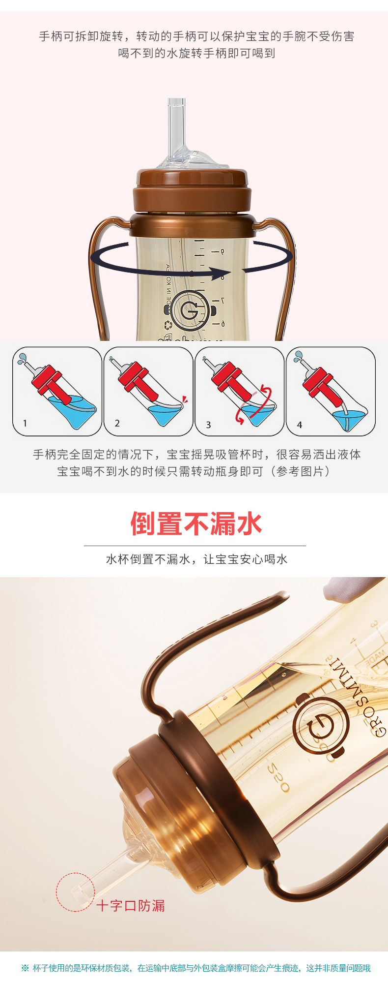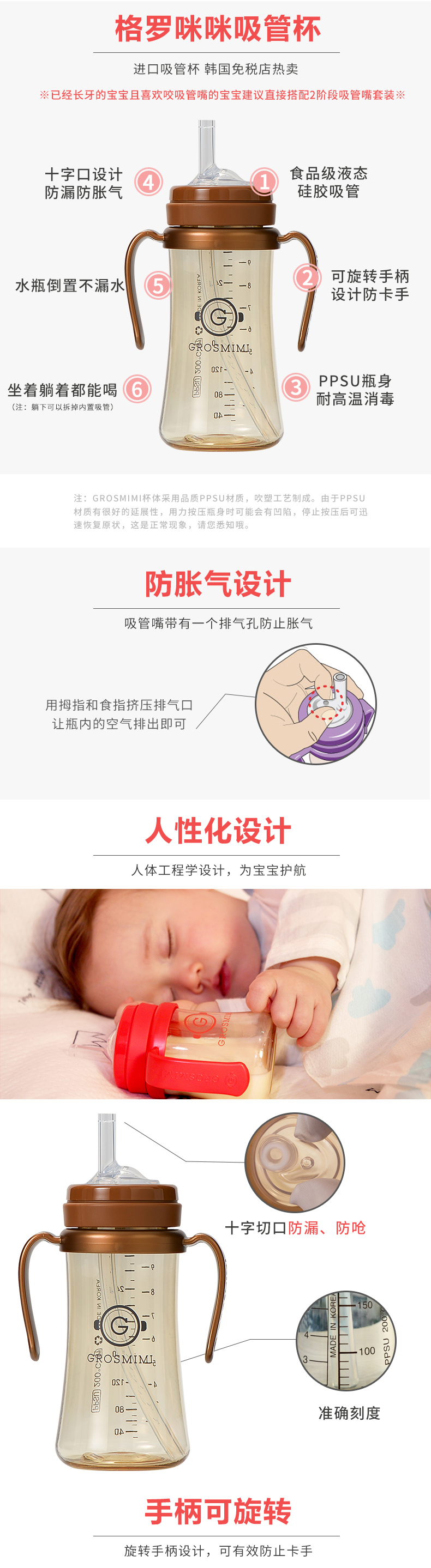 【门店直发】【原装进口一手货源】格罗咪咪Grosmimi吸管杯奶瓶婴儿童学饮宝宝喝奶水杯防漏韩国进口