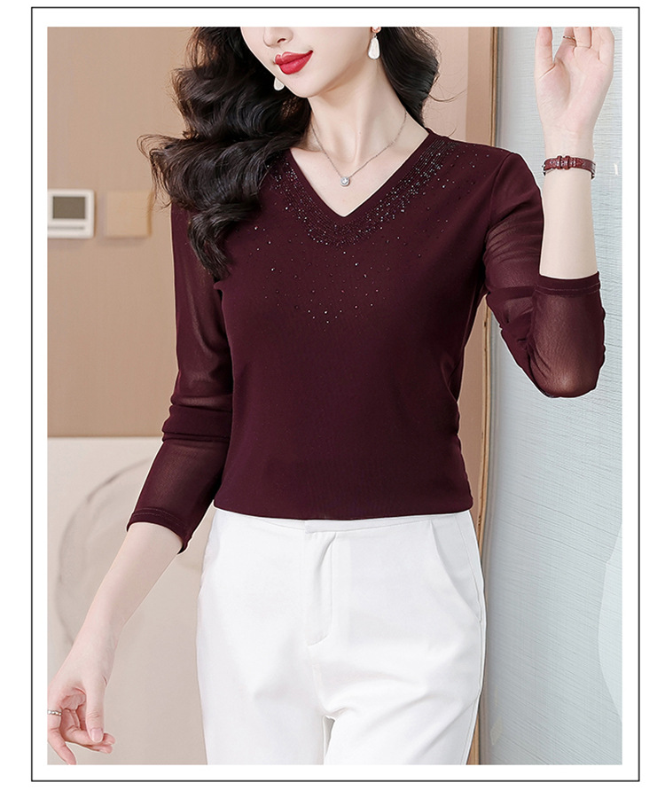 KQL D36M8319网纱气质洋气妈妈装显瘦长袖上衣