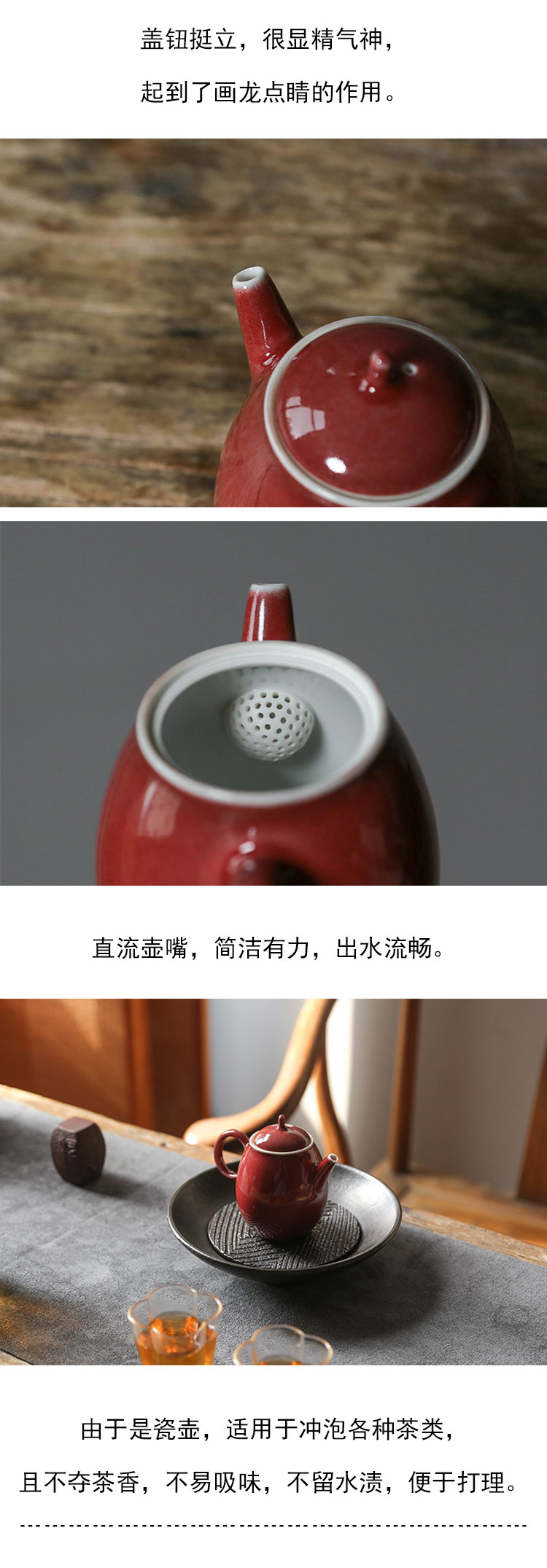 茶香记 景德镇岩墨山房豇豆红美人肩壶150ml颜色釉陶瓷泡茶壶明艳高雅