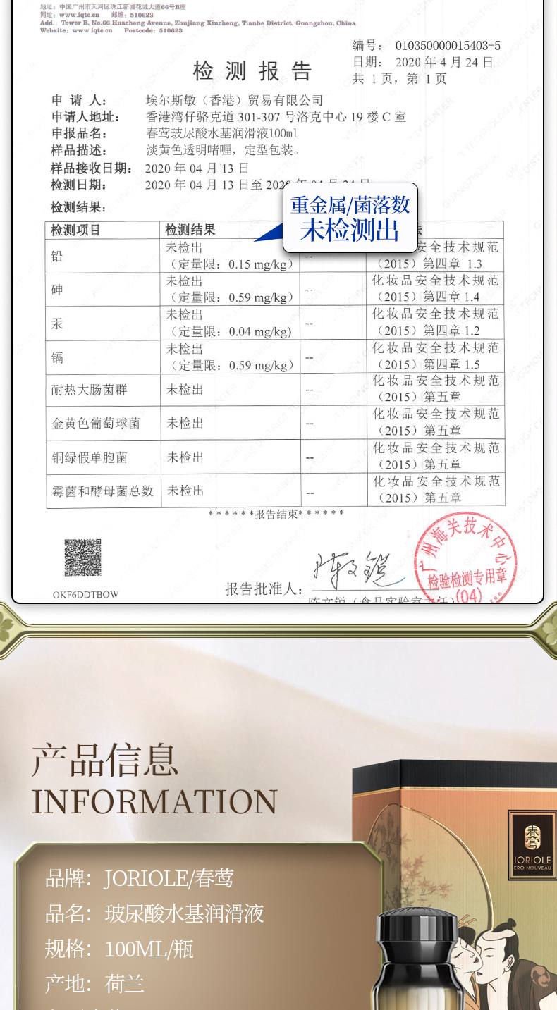 【荷兰进口 大容量 荷兰欧美双质检】春莺Joriole 水之吻 玻尿酸润滑剂100ml 可以喝的润滑