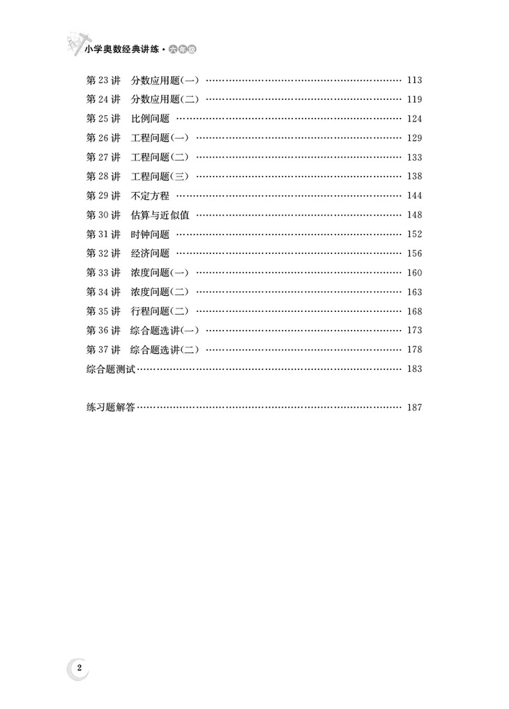 本从书分为四、五、六年级三个分册。书稿以例题讲解和练习巩固相结合(练习随附在例题之后)的形式分专题编写。四年级分册36讲,五年级分册37讲,六年级分册38讲。丛书内容基本涵盖了小学奥数的重要知识点。从书讲解的例题近1000道,例题随附的匹配练习近1200道,每一道例题和匹配的练习题都提供了详细、精准的解答,真正做到了精讲精练。