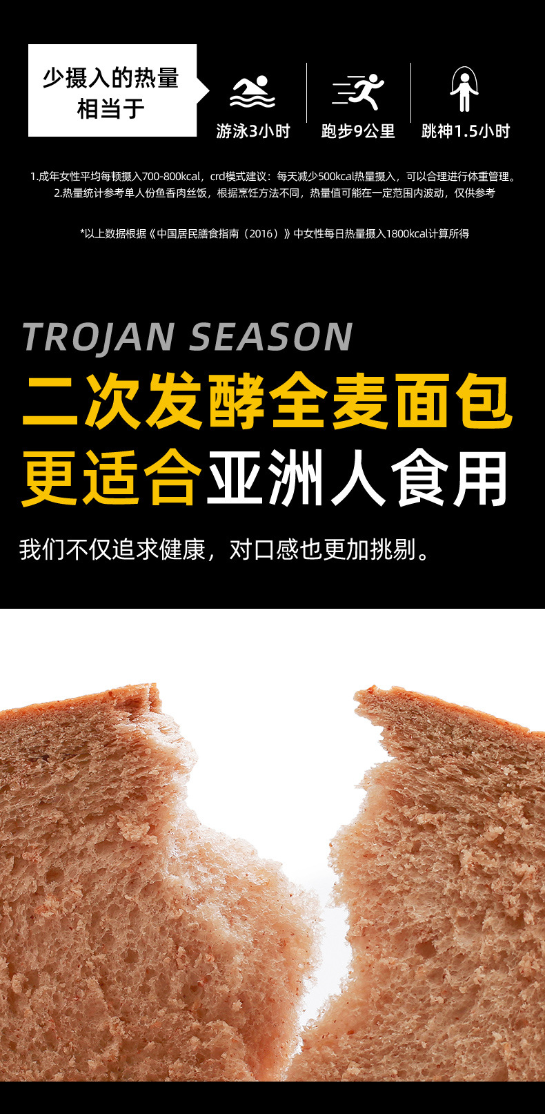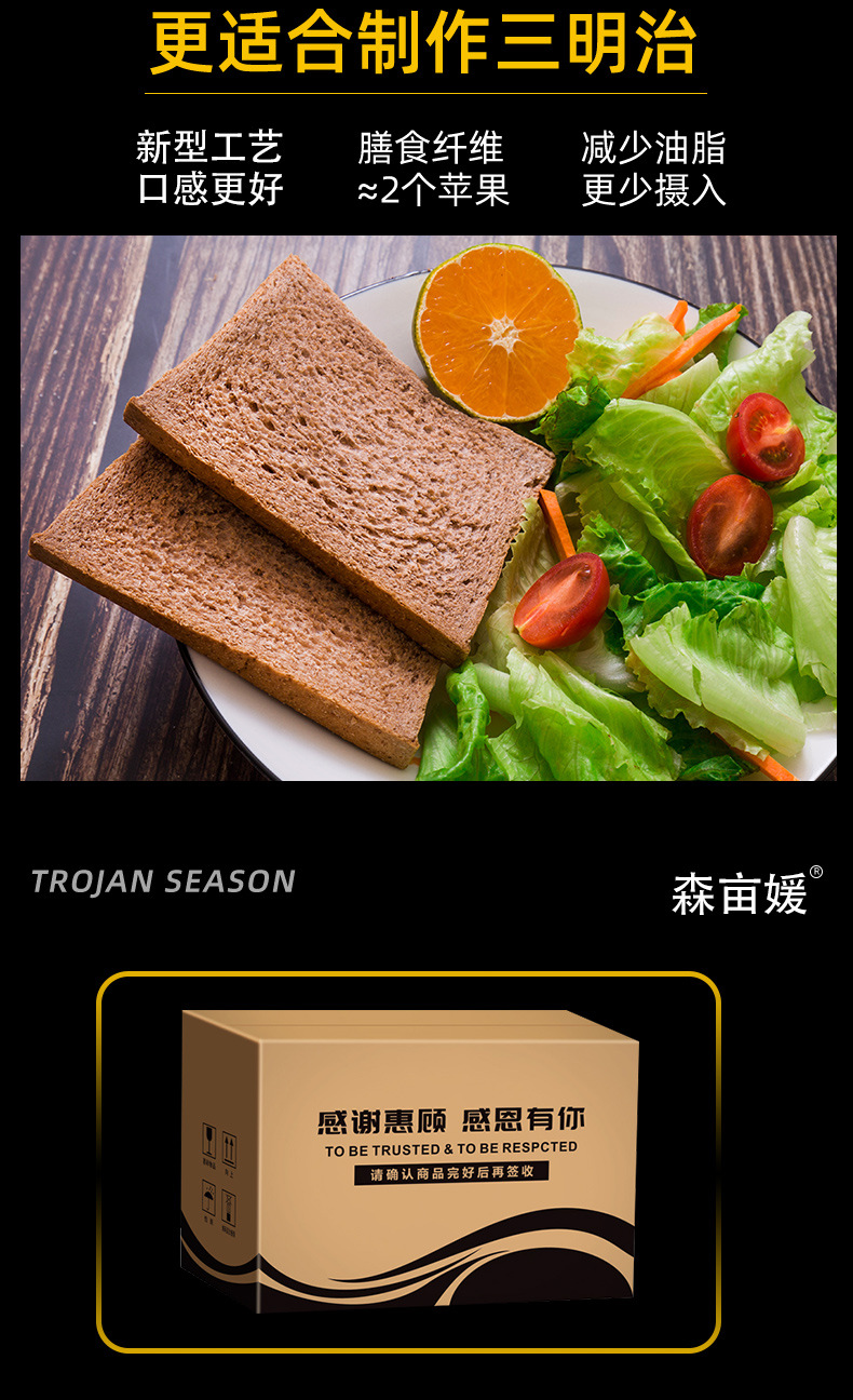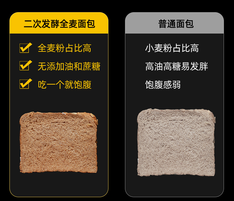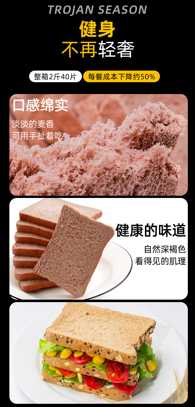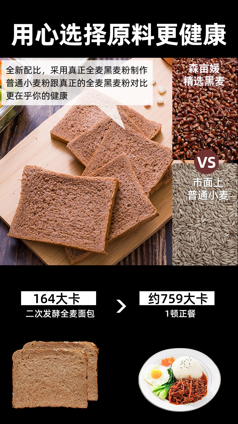 0脂轻卡,0蔗糖【新鲜现发!断糖抗饿】全麦面包黑麦代餐无添加蔗糖荞麦粗粮减低脂饱腹吐司。ha