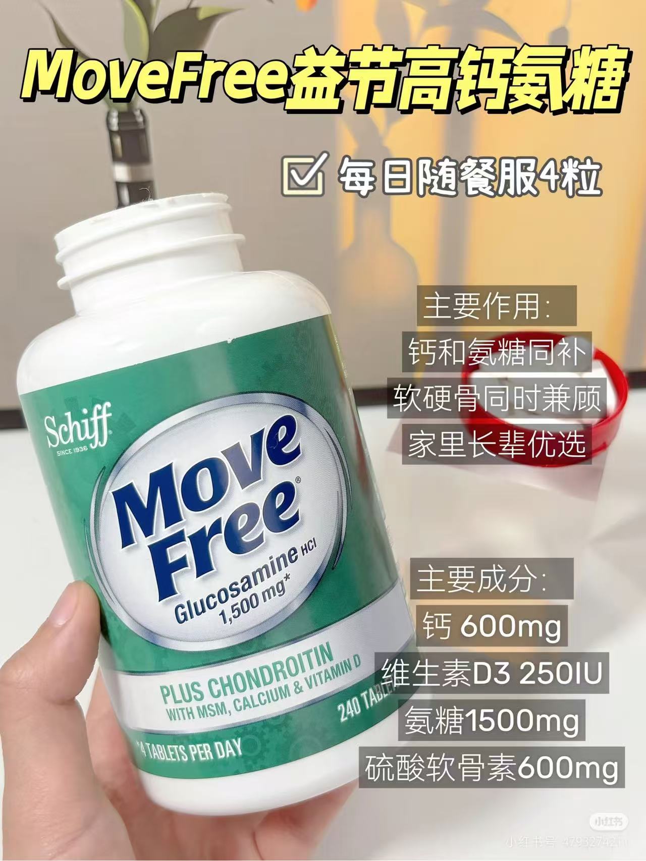 【美国专业关节健康品牌】辅助关节营养 | Move Free益节 5合1氨糖钙/高钙氨糖 维D3高钙片 氨糖软骨素/维骨力MSM 240粒