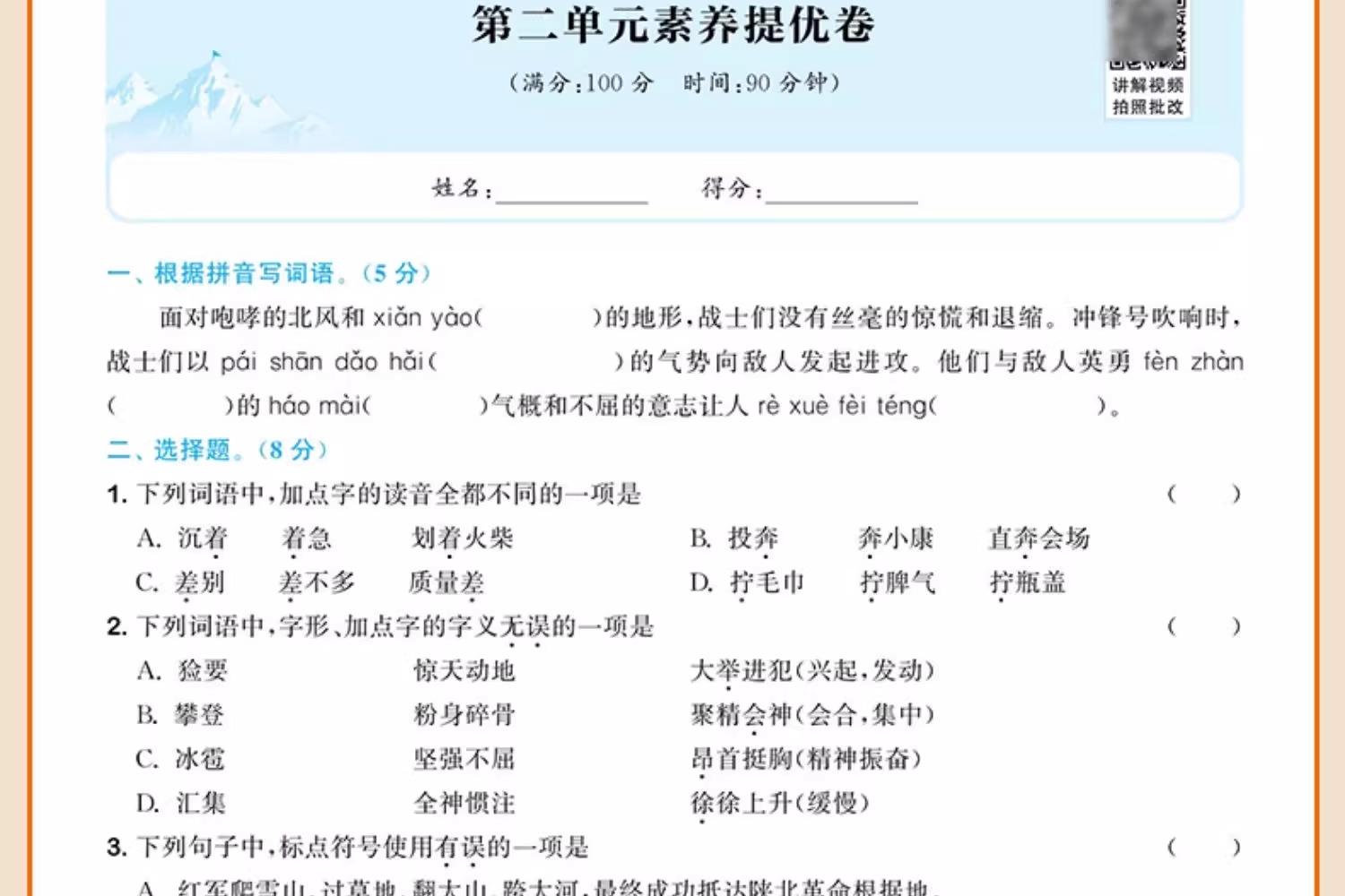 2025秋通成学典拔尖特训大试卷上册人教版学视频通城学典