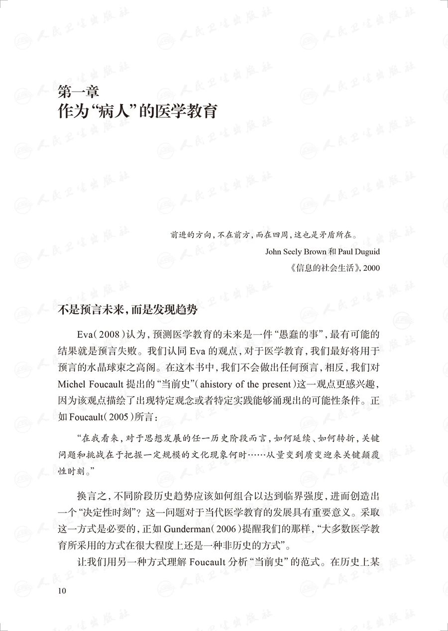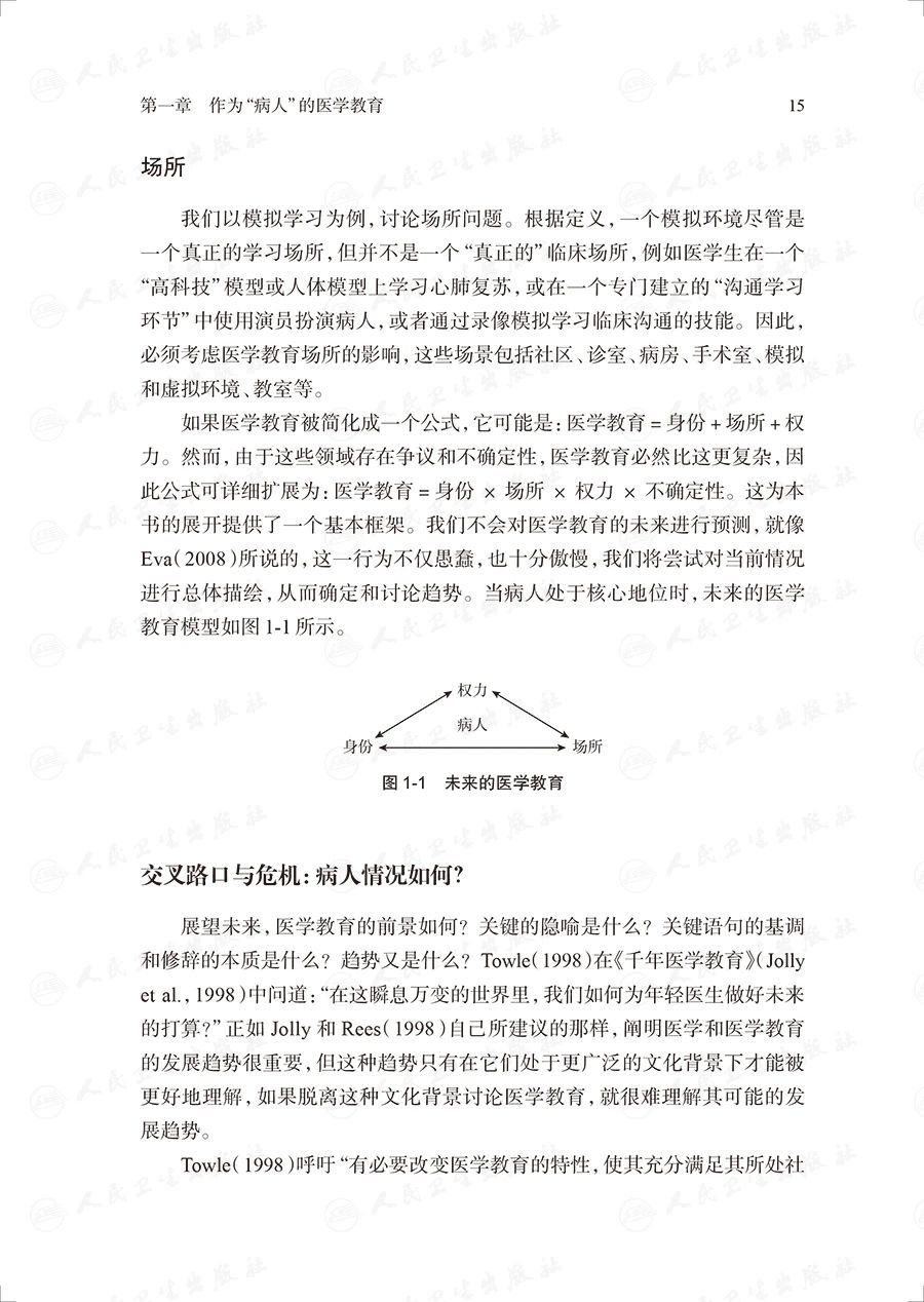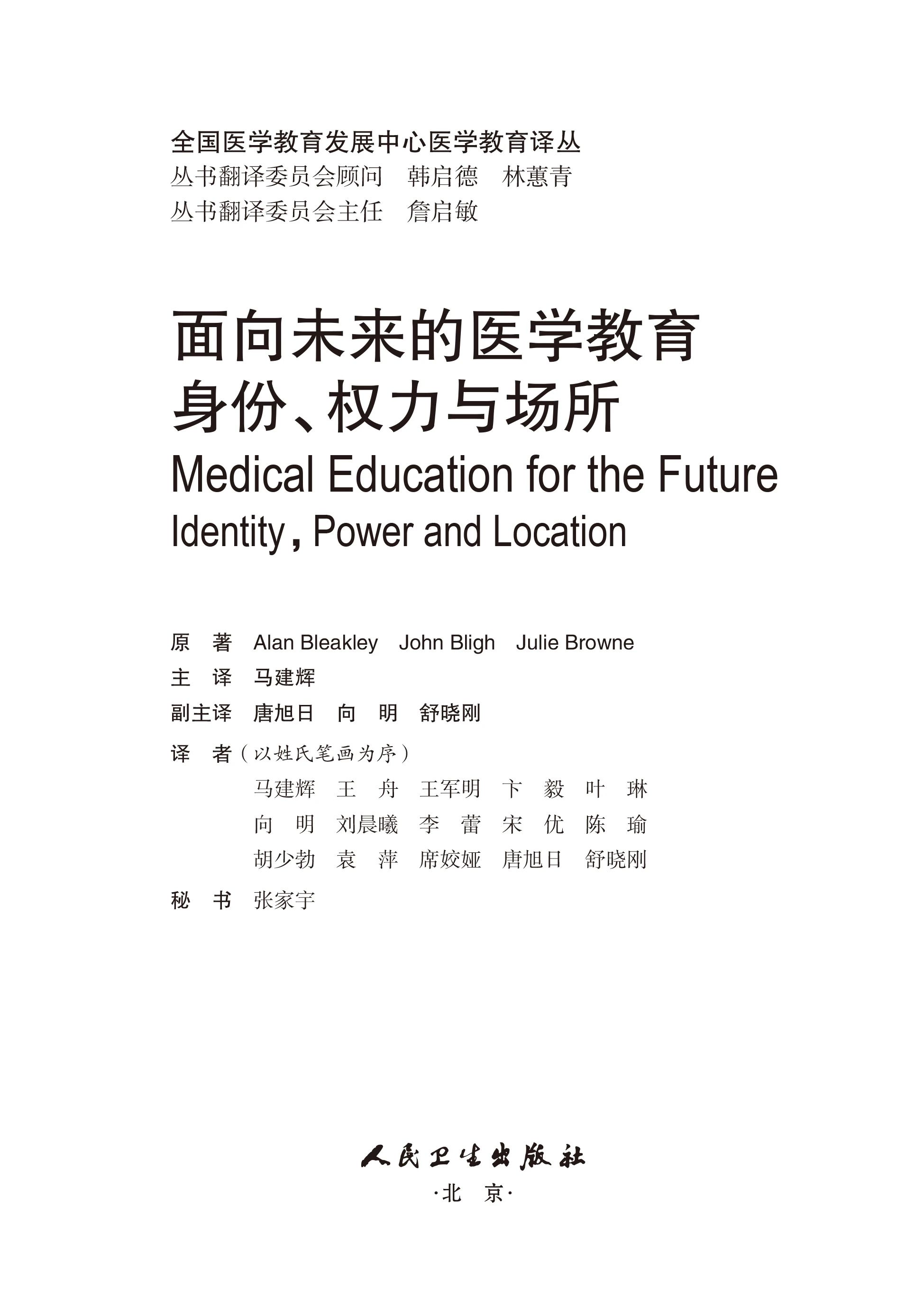 本书指出医学教育正在向更加民主,医疗实践更加“以病人为中心”的方向过渡,就医学教育中的身份、权力和场所等问题进行重点讨论,并展望了医学教育的未来。本书对于从事医疗卫生、医学教育等领域研究的研究人员、管理人员和高等院校师生具有一定的启发。