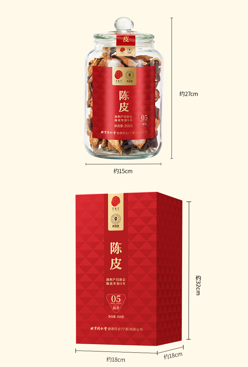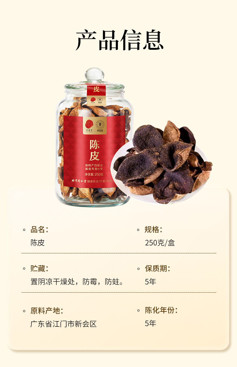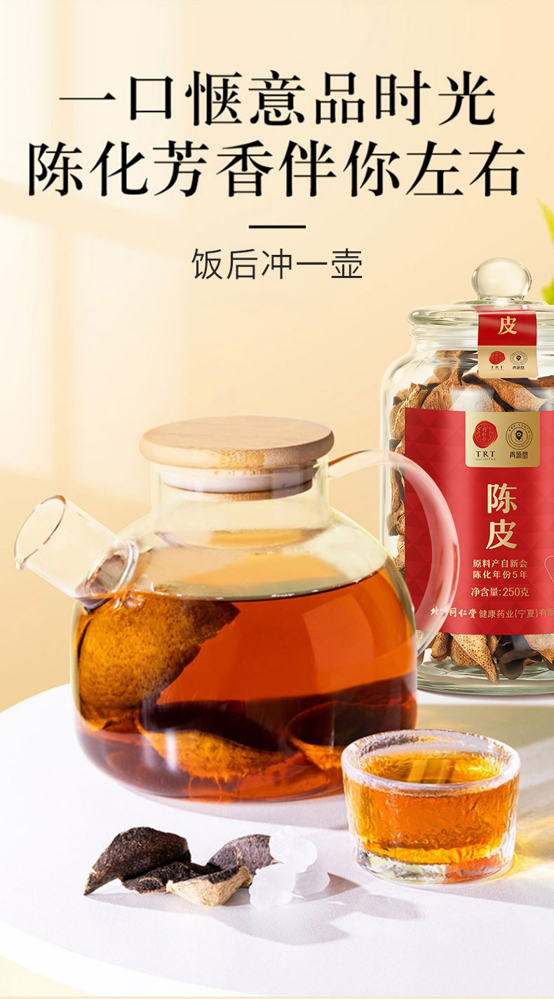 【正宗同仁堂品牌】北京同仁堂 青源堂 陈皮 凝香05/250克/盒 甘香醇陈 汤色红润澄澈SY