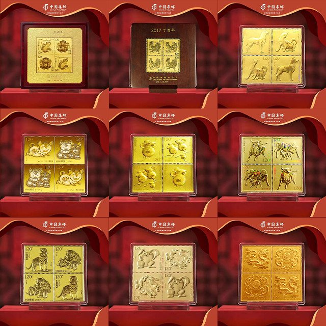 2016-2024年生肖邮票金,含纯金2克、小版邮票、礼盒包装